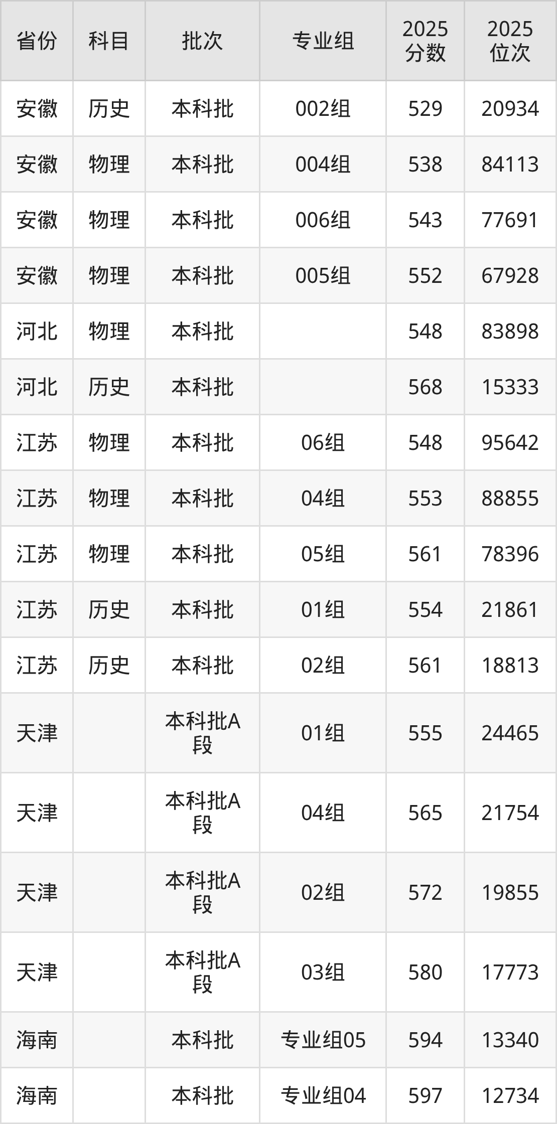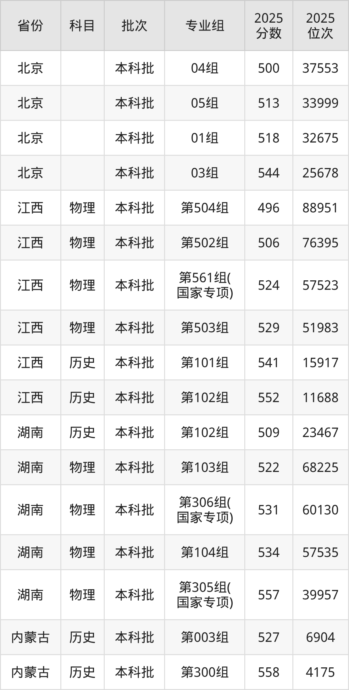 下面是2025年中国民用航空飞行学院全国录取分数线一览表,请查阅。