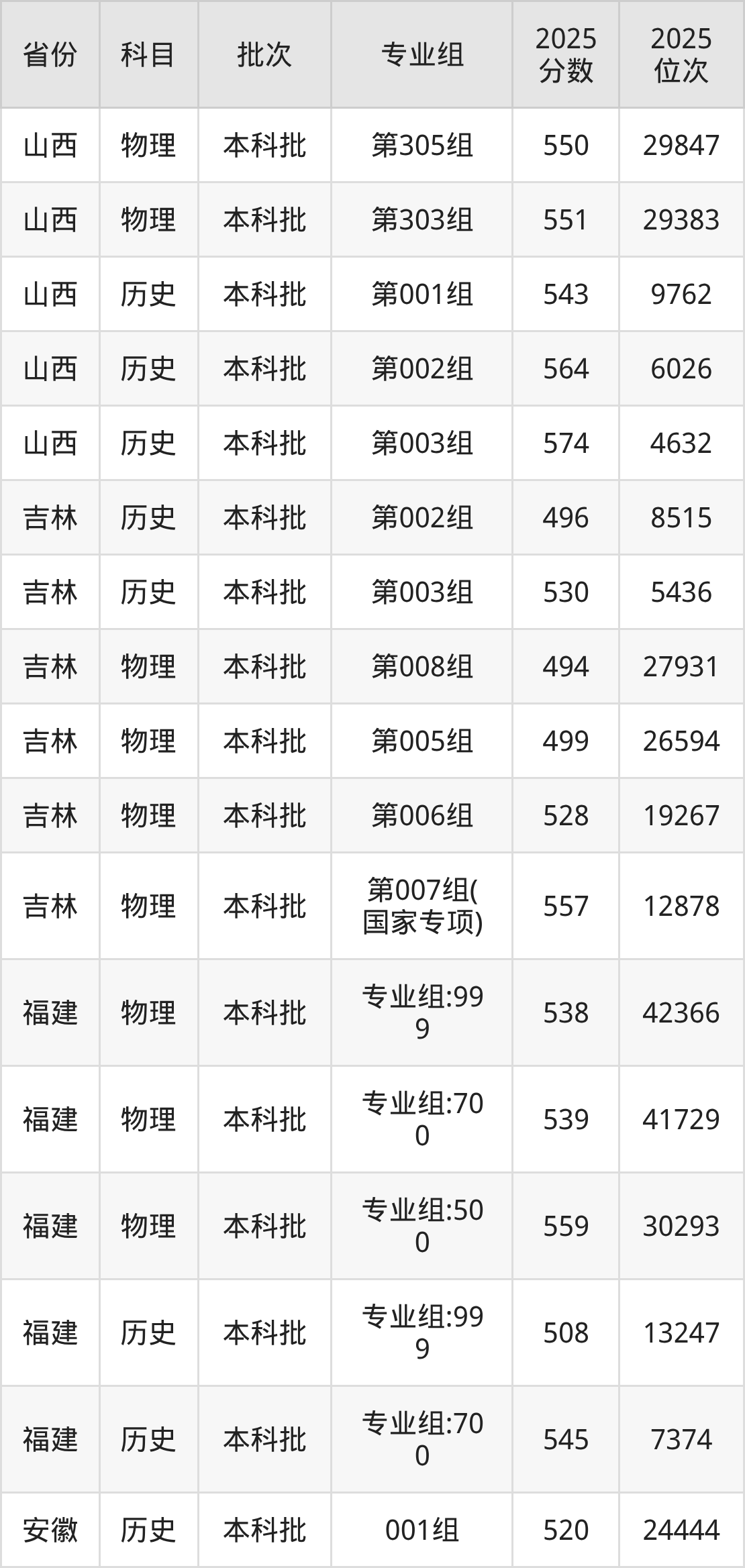 普通类本科物理类最低548分,本科历史类最低554分