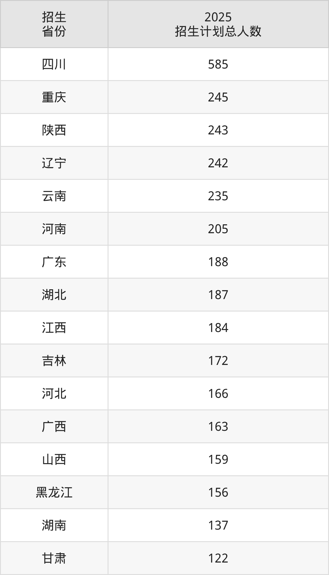 2025年中国民用航空飞行学院面向全国28个省市开展本科招生;招生专业共34个,招生人数共4249人。2025年在四川省招生计划总人数是585人,其中,中国民用航空飞行学院在四川省招生人数最多的是交通运输。中国民用航空飞行学院在各省具体招生人数情况如下表。