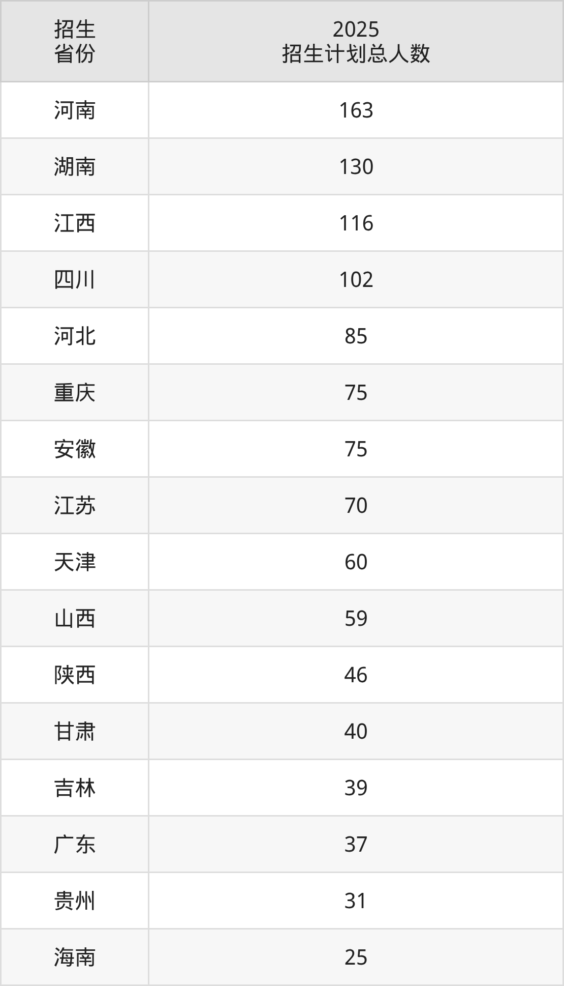 2025年武汉船舶职业技术学院面向全国23个省市开展专科招生;招生专业共43个,招生人数共1237人。武汉船舶职业技术学院在各省具体招生人数情况如下表。