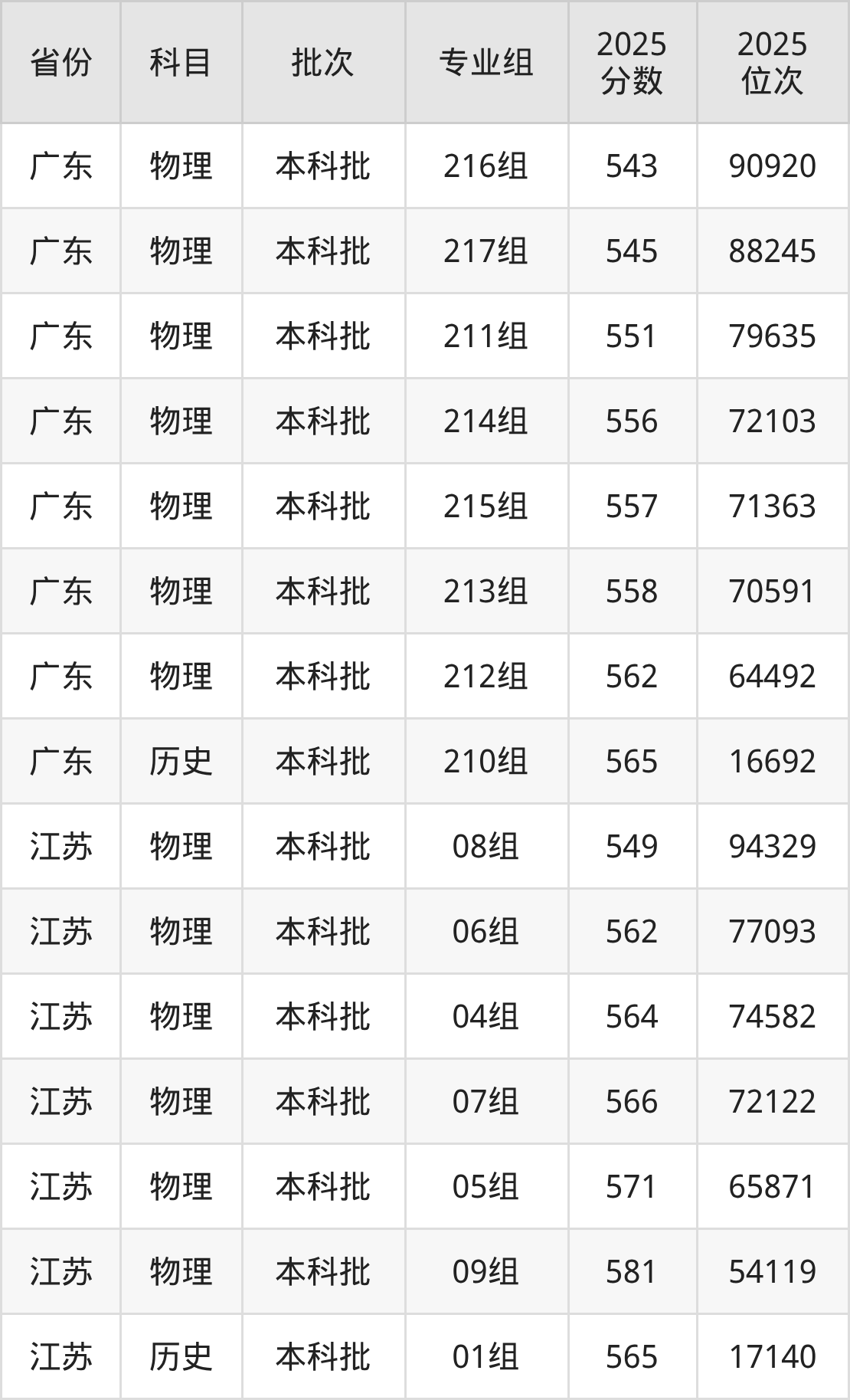 集美大学第06组:2025年投档录取最低分为540分,录取最低位次为52382名。