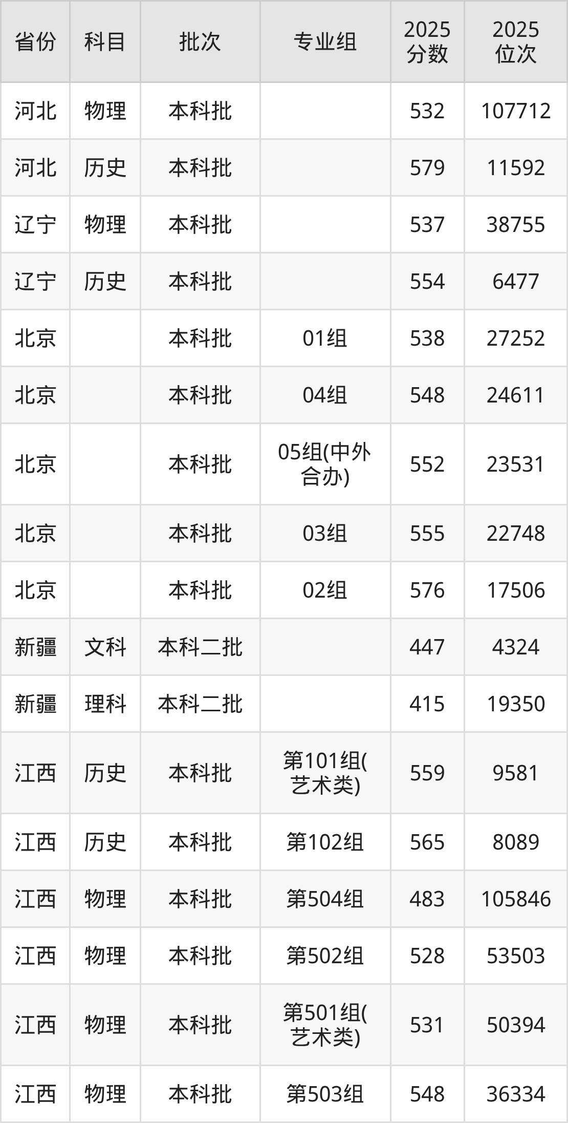 2025年浙江传媒学院全国录取分数线是415分到651分,录取最低在新疆理科、录取最高在海南(专业组80)。各省各专业组最低分具有差异,详情如下: