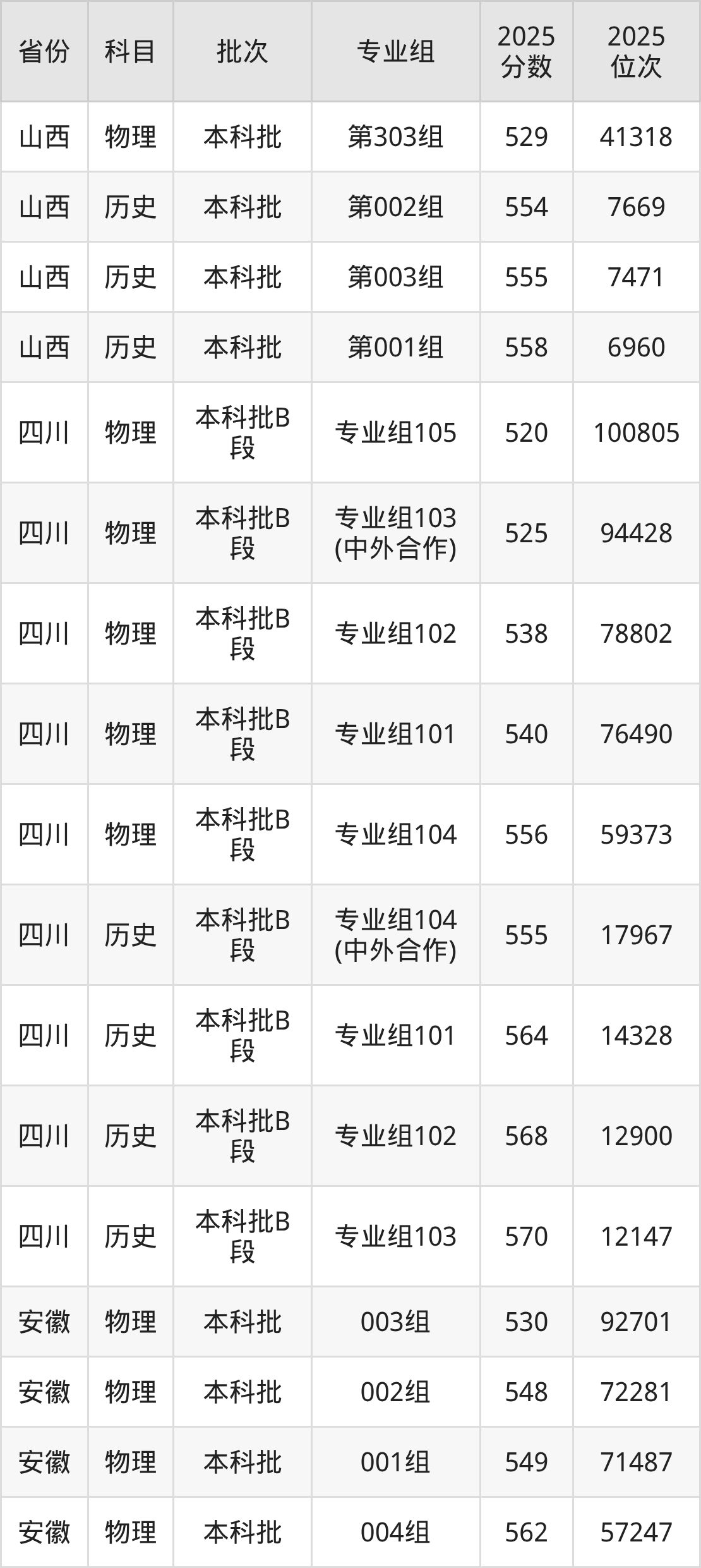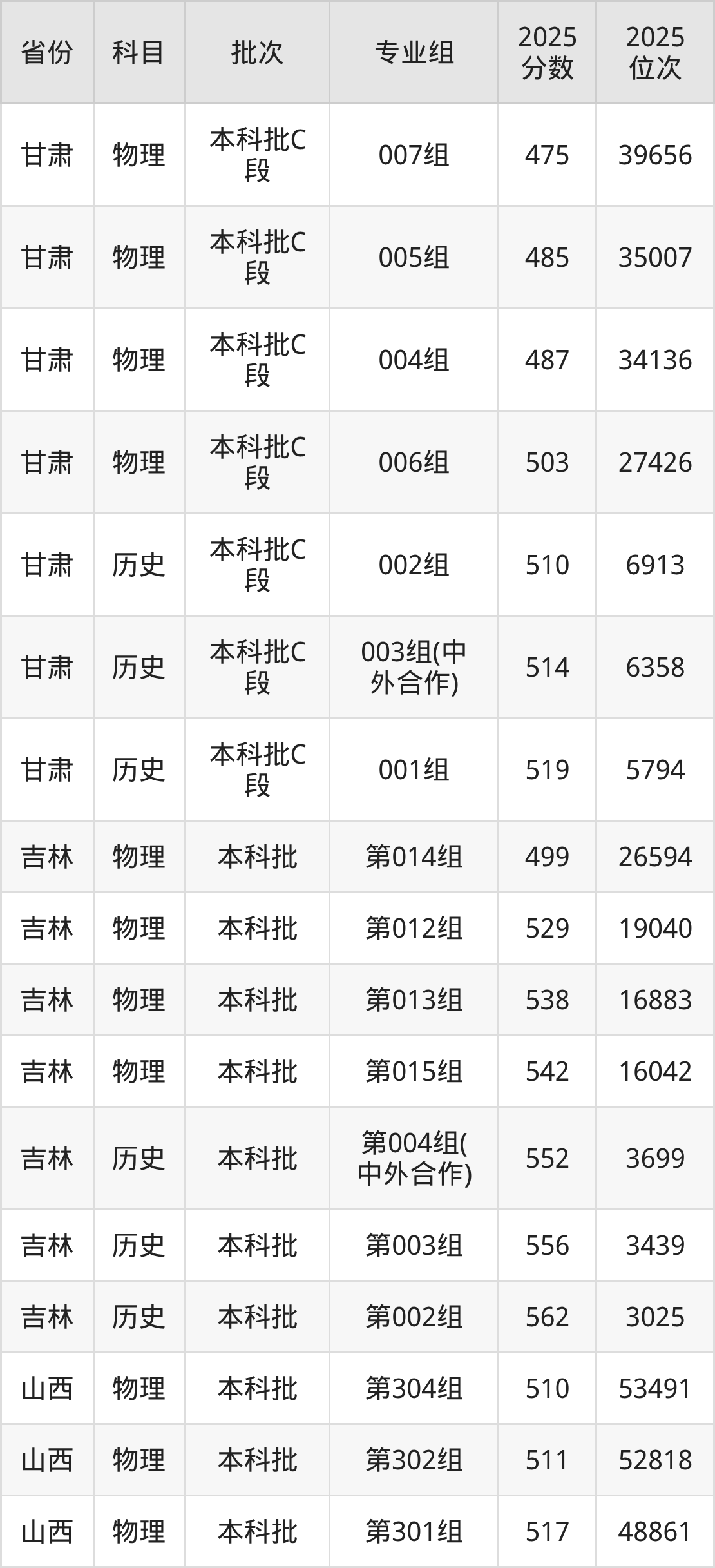 普通类本科物理类最低515分,本科历史类最低561分