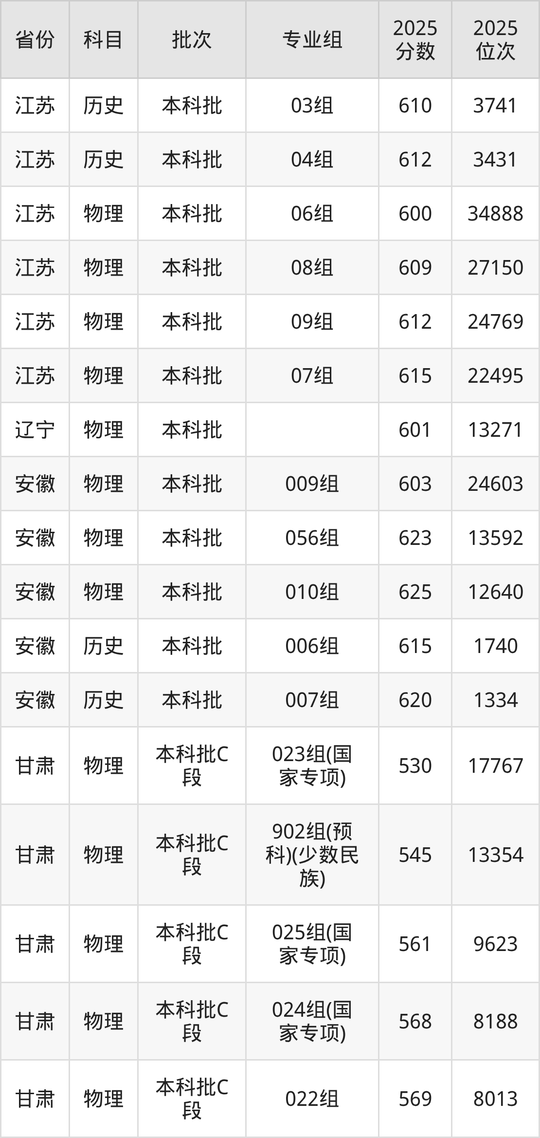 教育学(创新实验班):2025年投档录取最低分为622分。