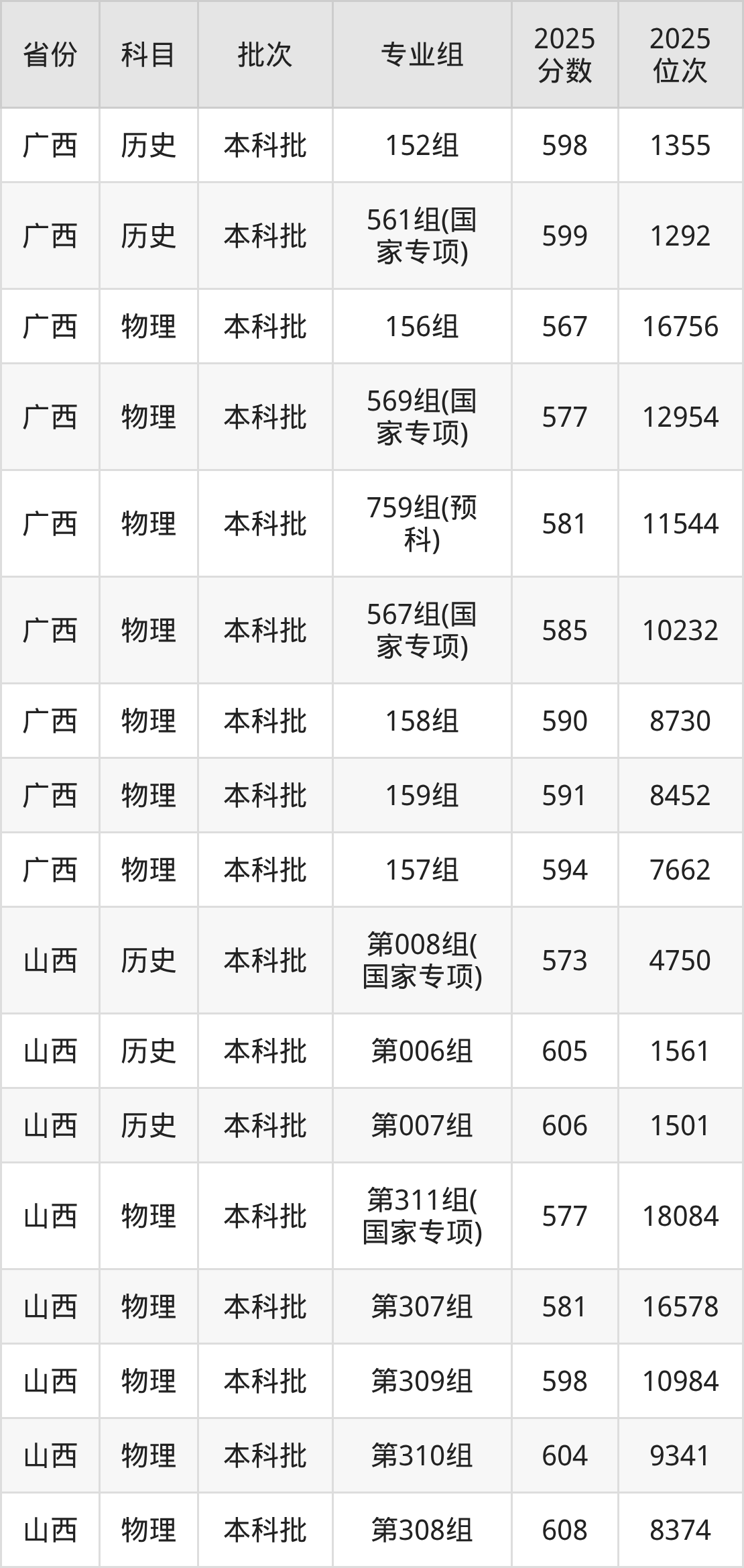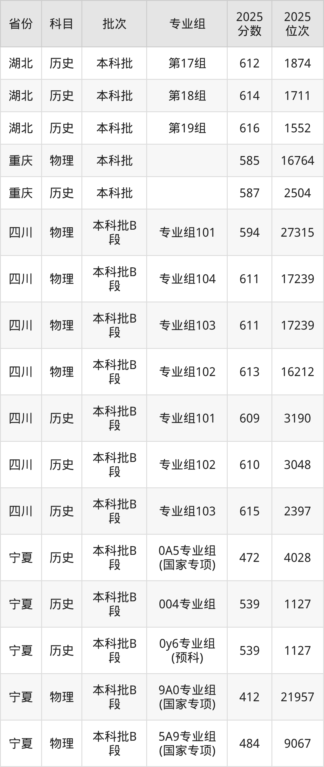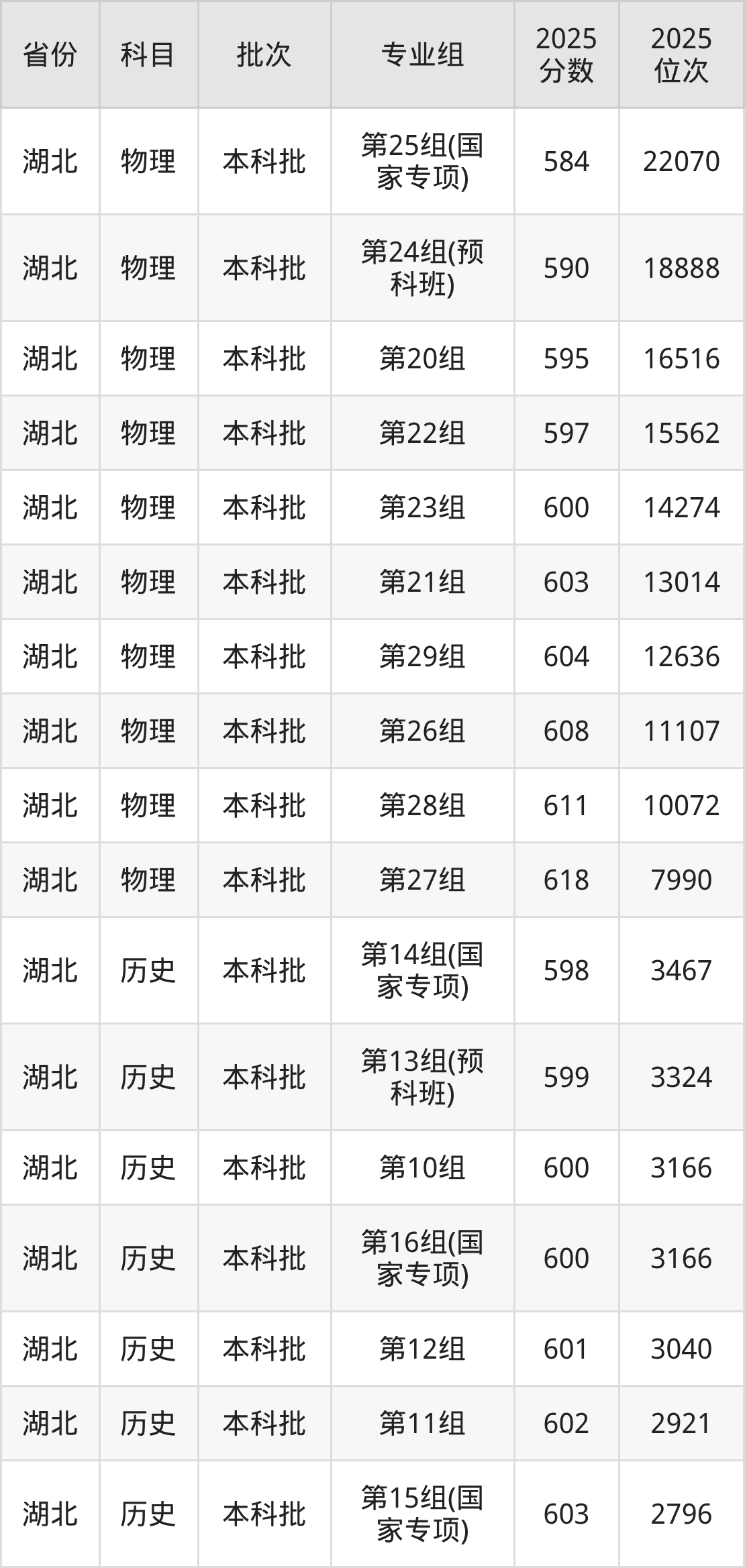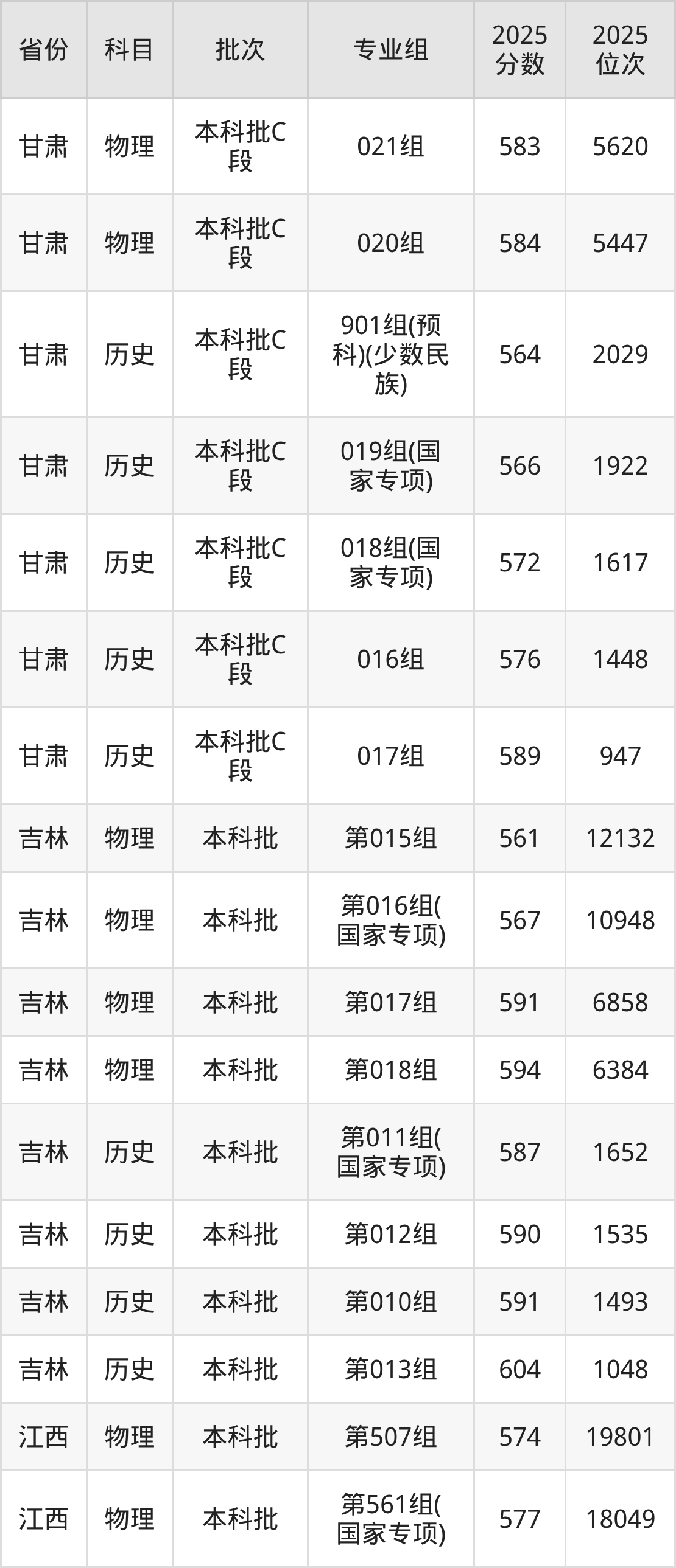 华中师范大学第25组(国家专项计划):2025年投档录取最低分为584分,录取最低位次为22070名。