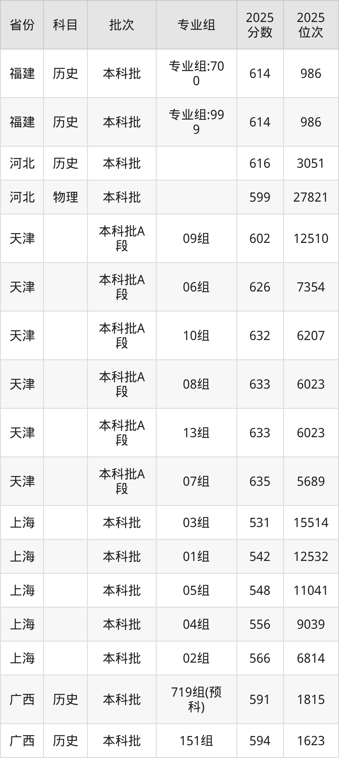 华中师范大学700组:2025年投档录取最低分为614分,录取最低位次为986名。