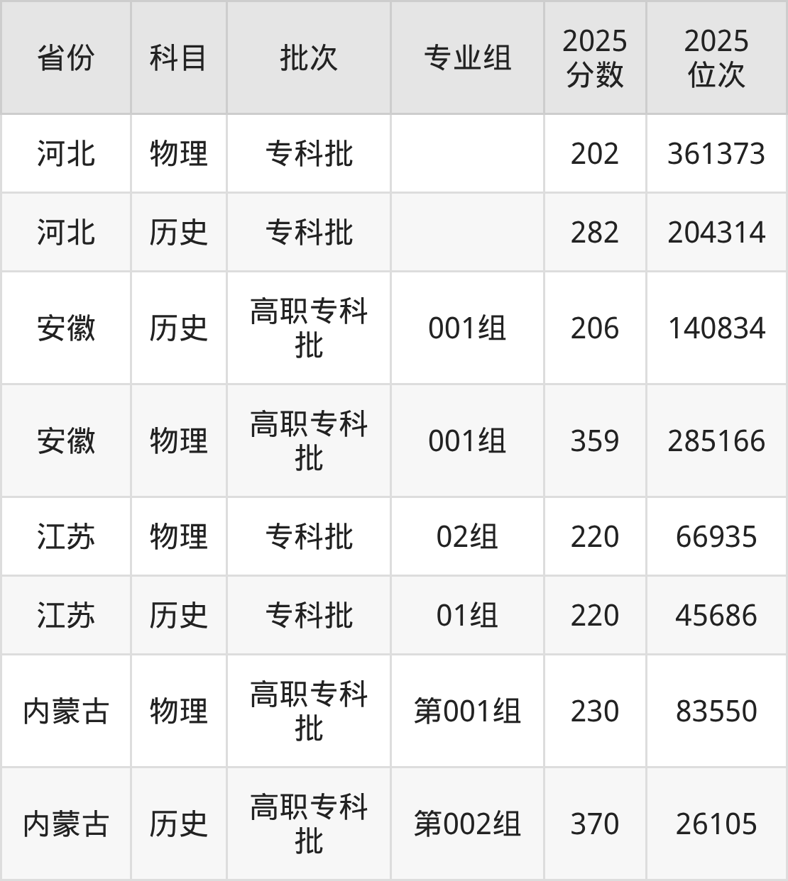 下面是2025年邢台新能源职业学院全国录取分数线一览表,请查阅。