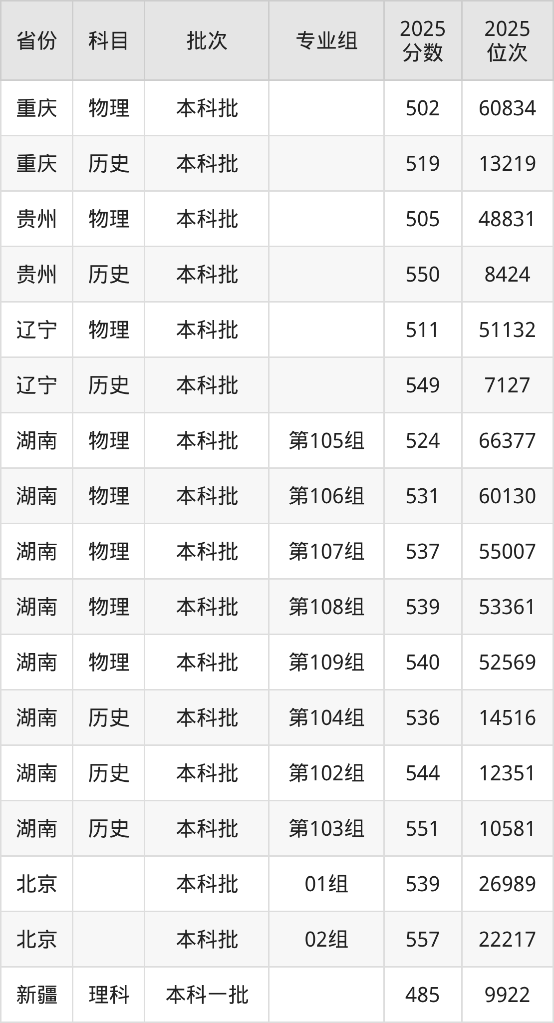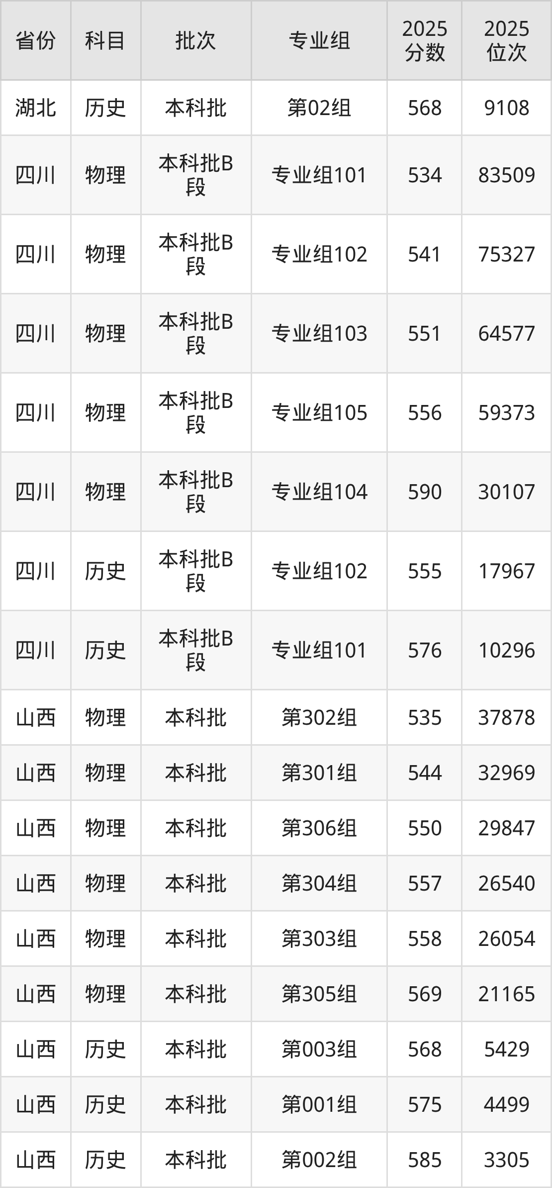 2025年投档录取最低分为549分,录取最低位次为7127名。