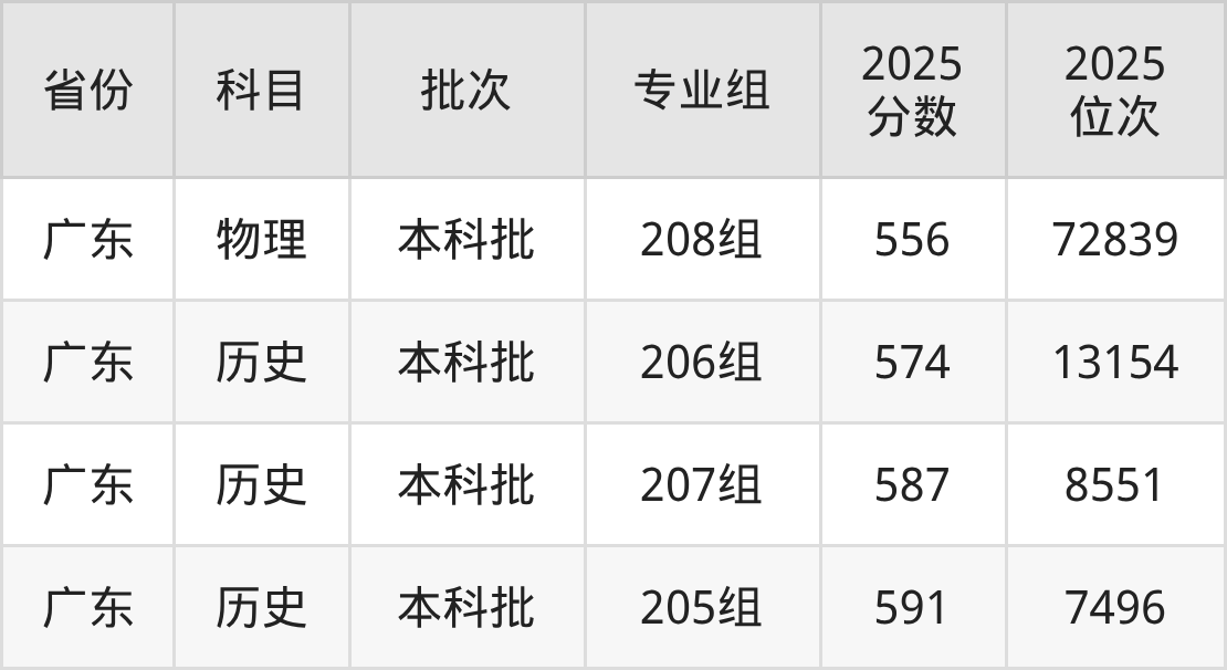 2025年投档录取最低分为559分,录取最低位次为6846名。