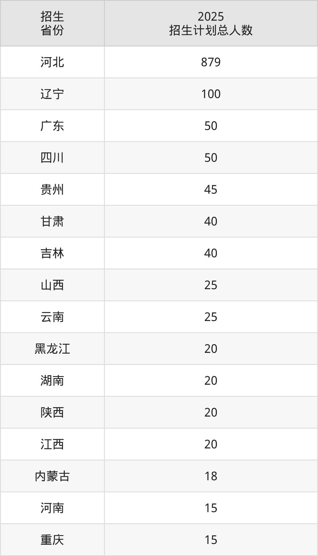 2025年河北旅游职业学院面向全国20个省市开展专科招生;招生专业共31个,招生人数共1426人。