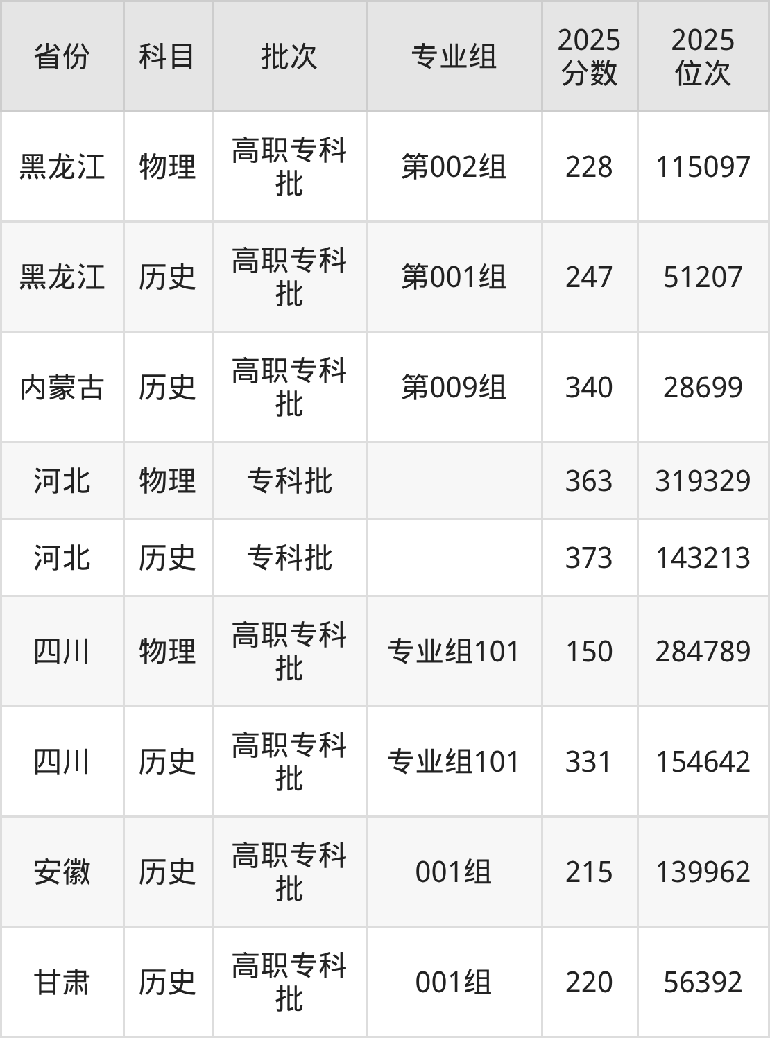 专科历史类投档录取最低340分