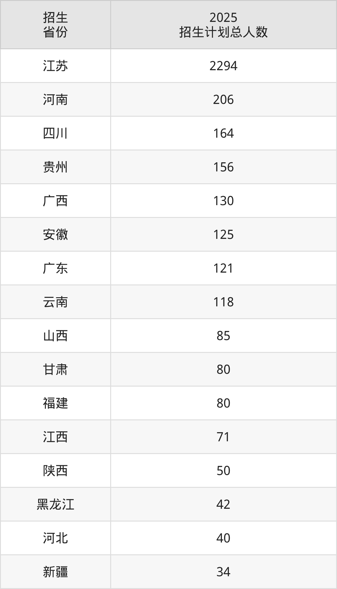 2025年三江学院面向全国21个省市开展本科招生;招生专业共38个,招生人数共3906人。2025年在江苏省招生计划总人数是2294人,其中,三江学院在江苏省招生人数最多的是电气工程及其自动化。三江学院在各省具体招生人数情况如下表。