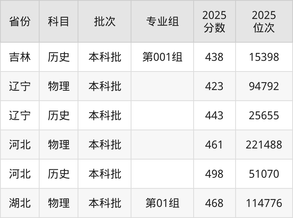 2025年投档录取最低分为461分,录取最低位次为221488名。