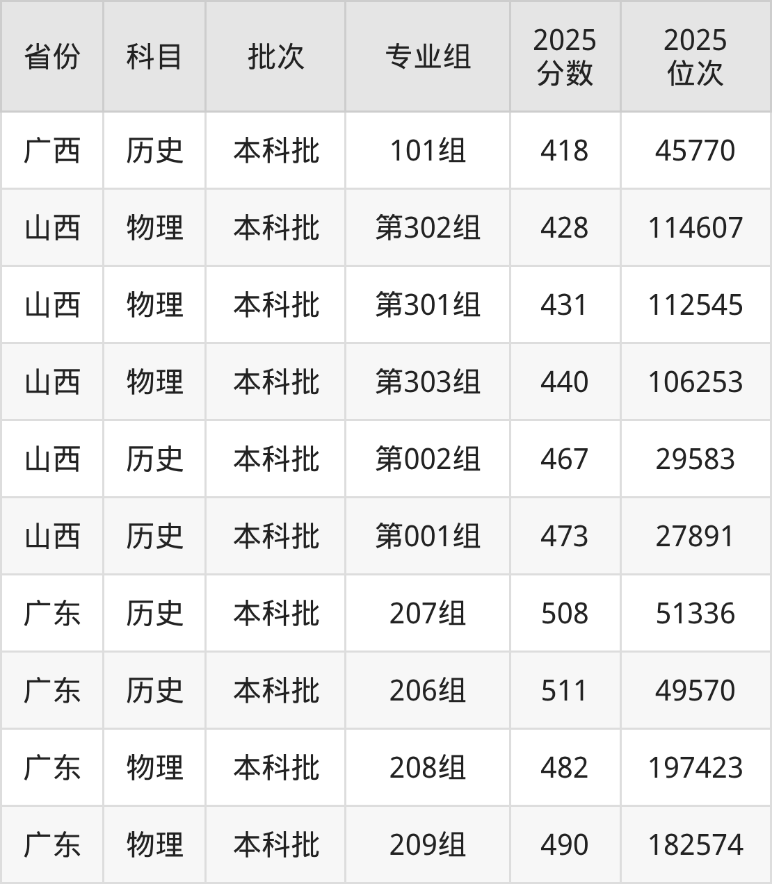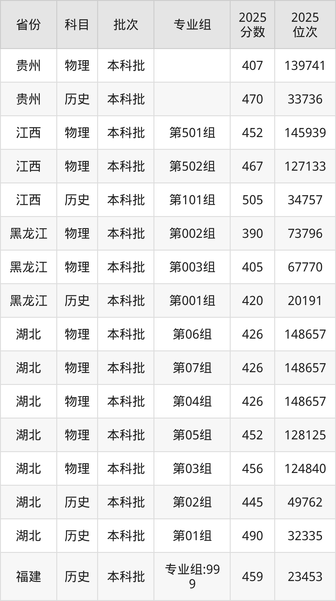 武汉工商学院第001组:2025年投档录取最低分为420分,录取最低位次为20191名。