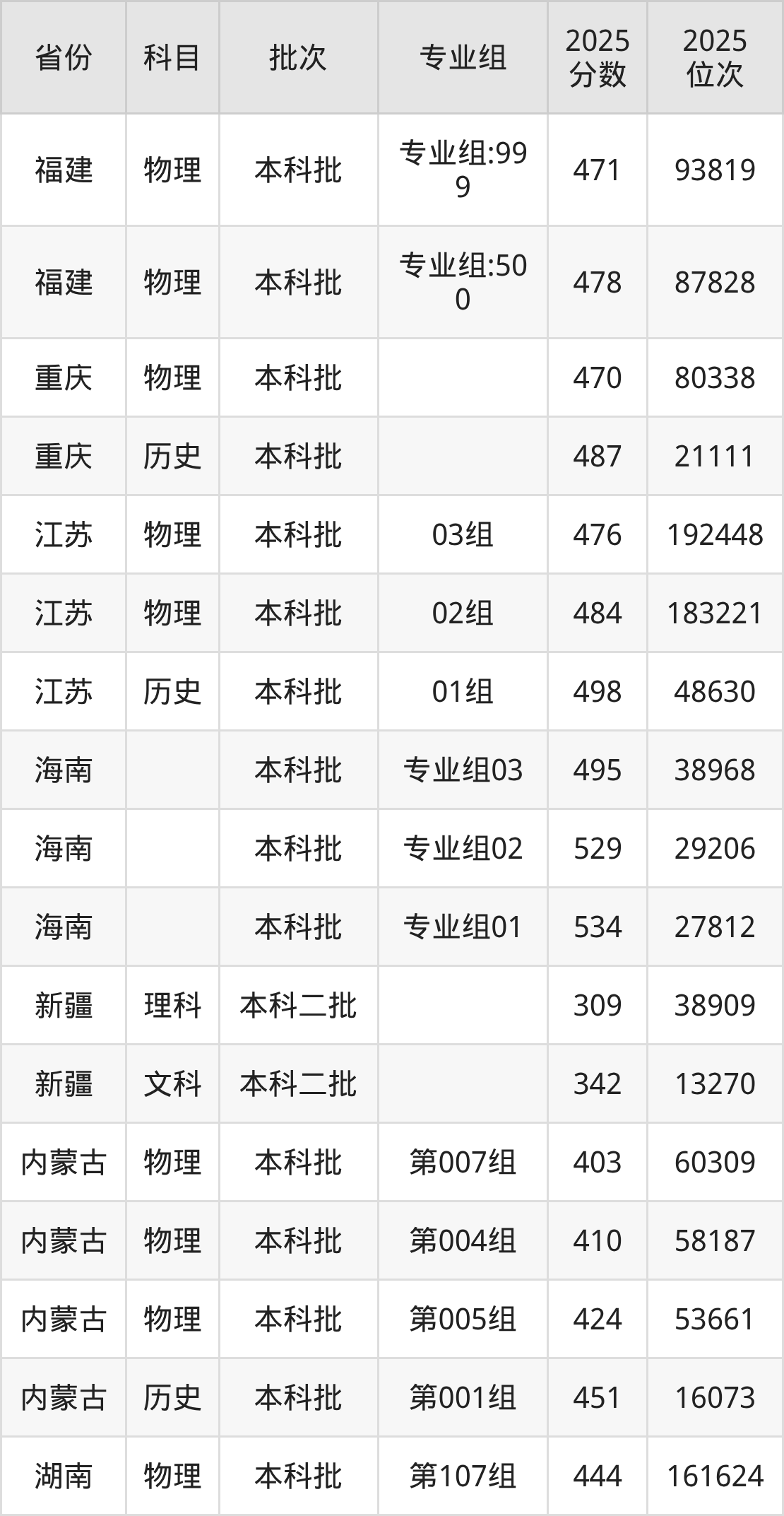 2025年投档录取最低分为470分,录取最低位次为80338名。