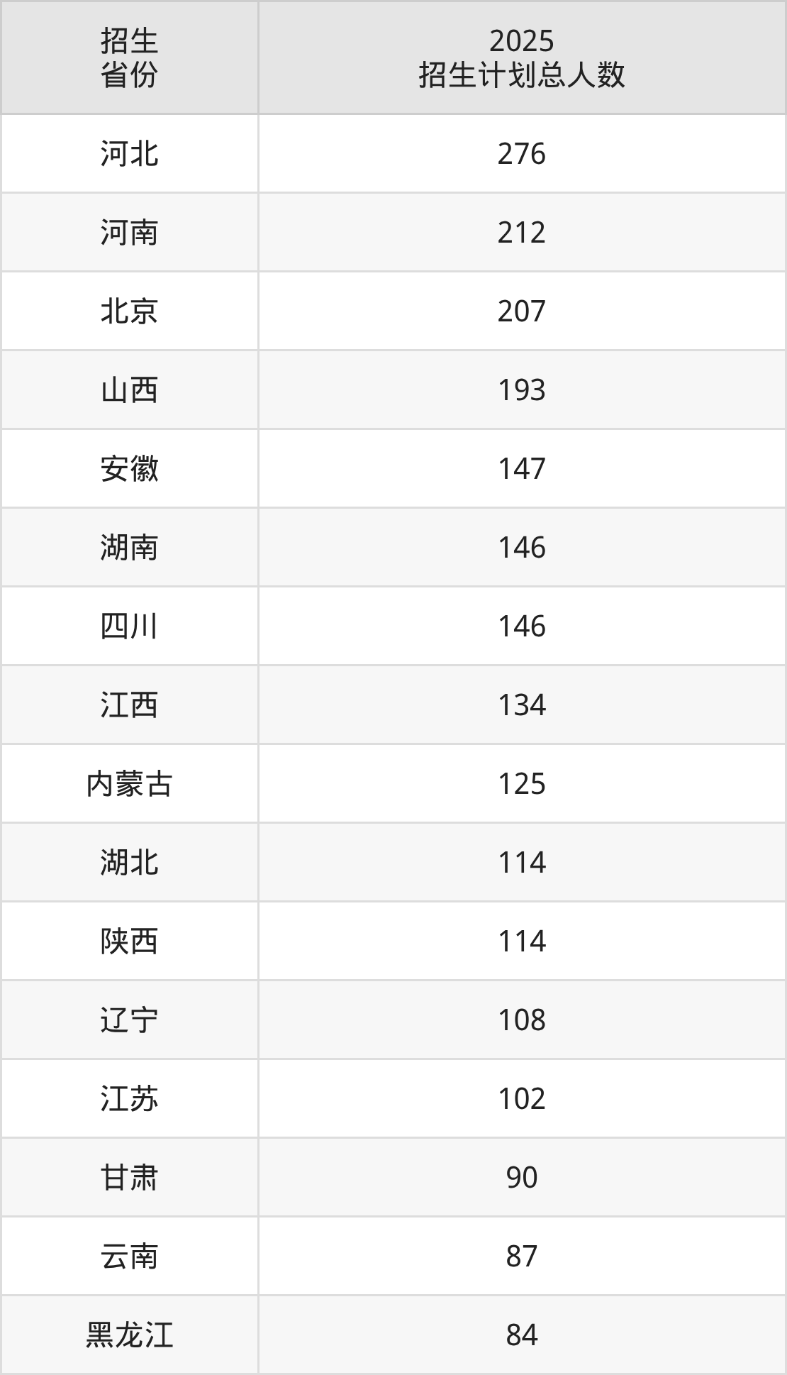 2025年北京科技大学面向全国28个省市开展本科招生;招生专业共29个,招生人数共2939人。2025年在北京市招生计划总人数是207人,其中,北京科技大学在北京市招生人数最多的是计算机类。北京科技大学在各省具体招生人数情况如下表。