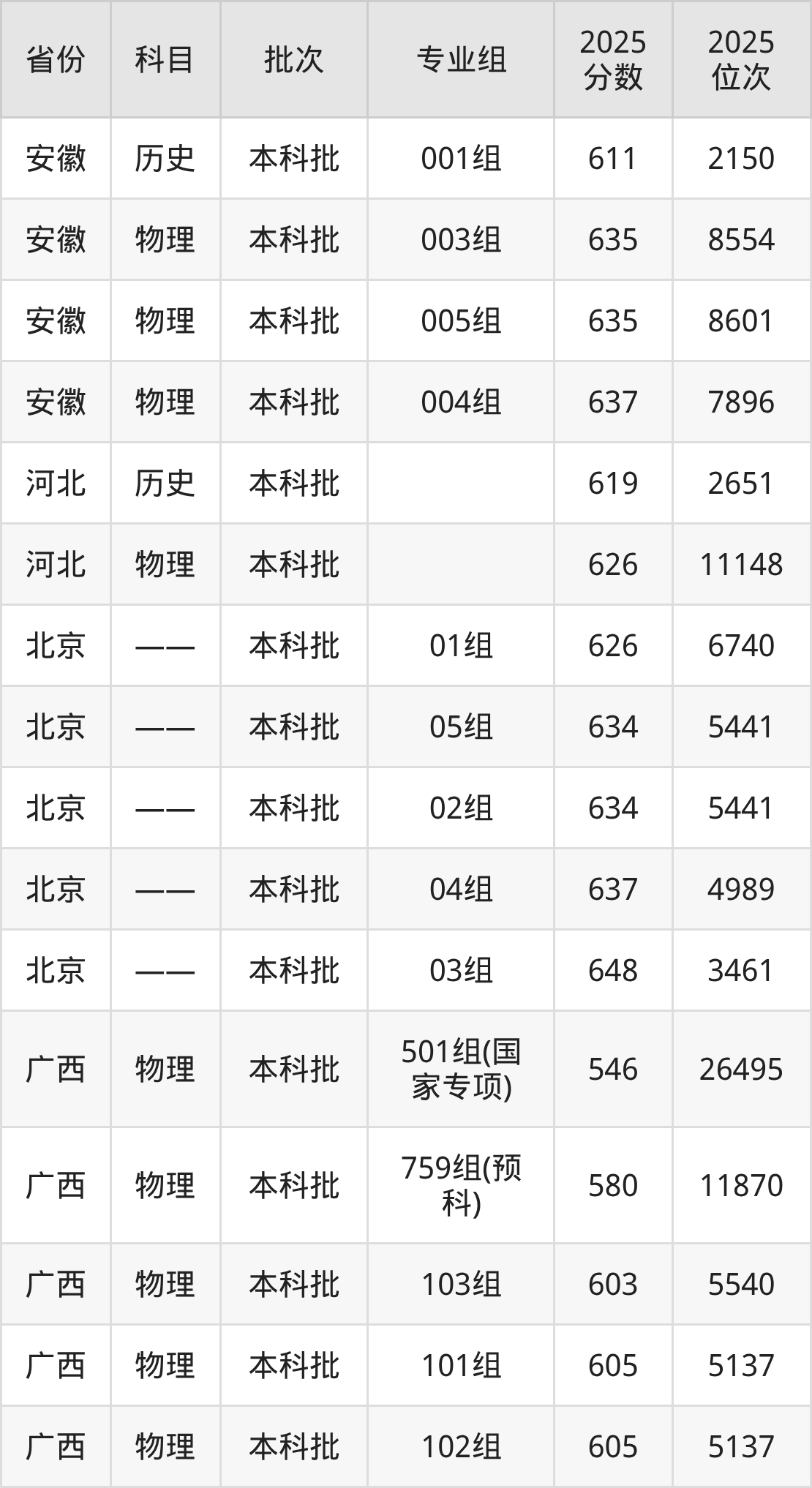 北京科技大学第005组:2025年投档录取最低分为604分,录取最低位次为5362名。