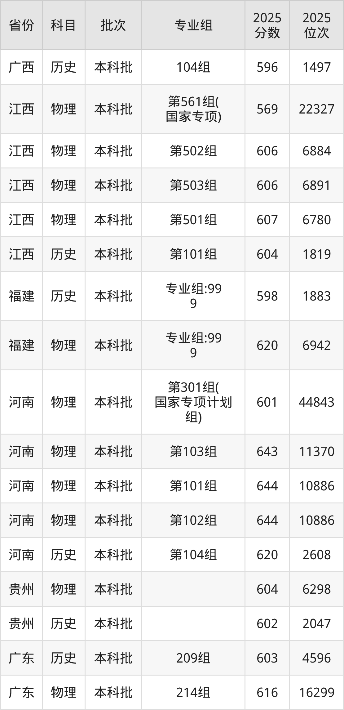 普通类本科物理类最低601分,本科历史类最低620分