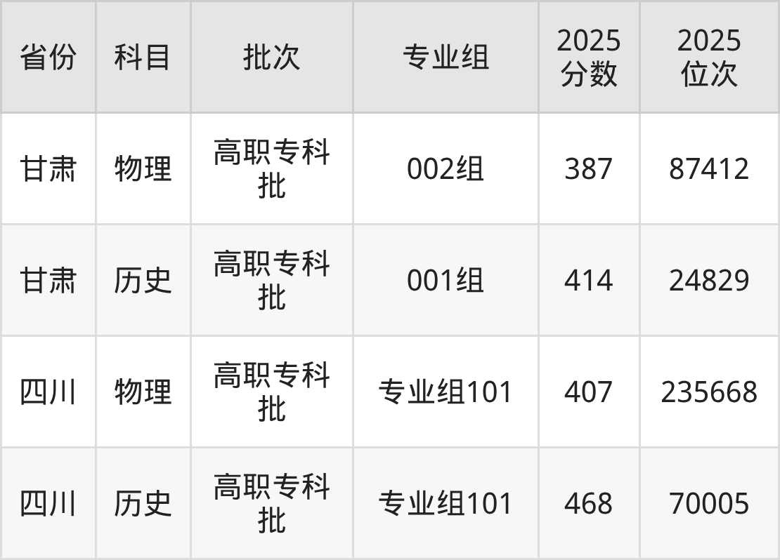 普通类专科物理类最低407分,专科历史类最低468分