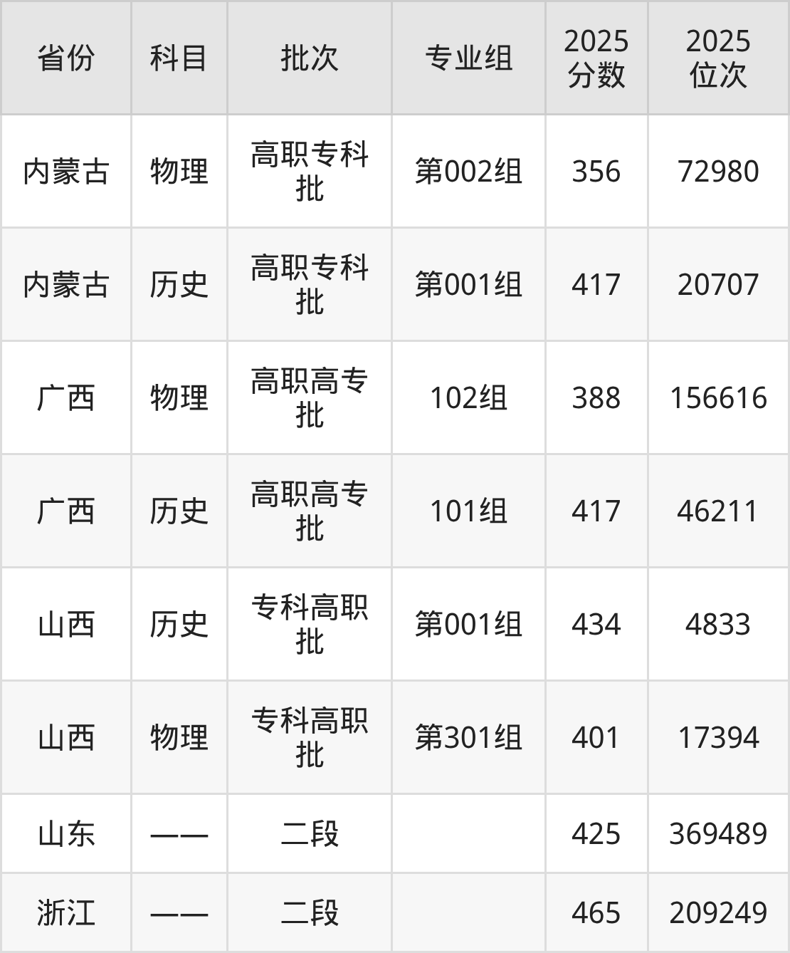 2025年投档录取最低分为327分,录取最低位次为14761名。