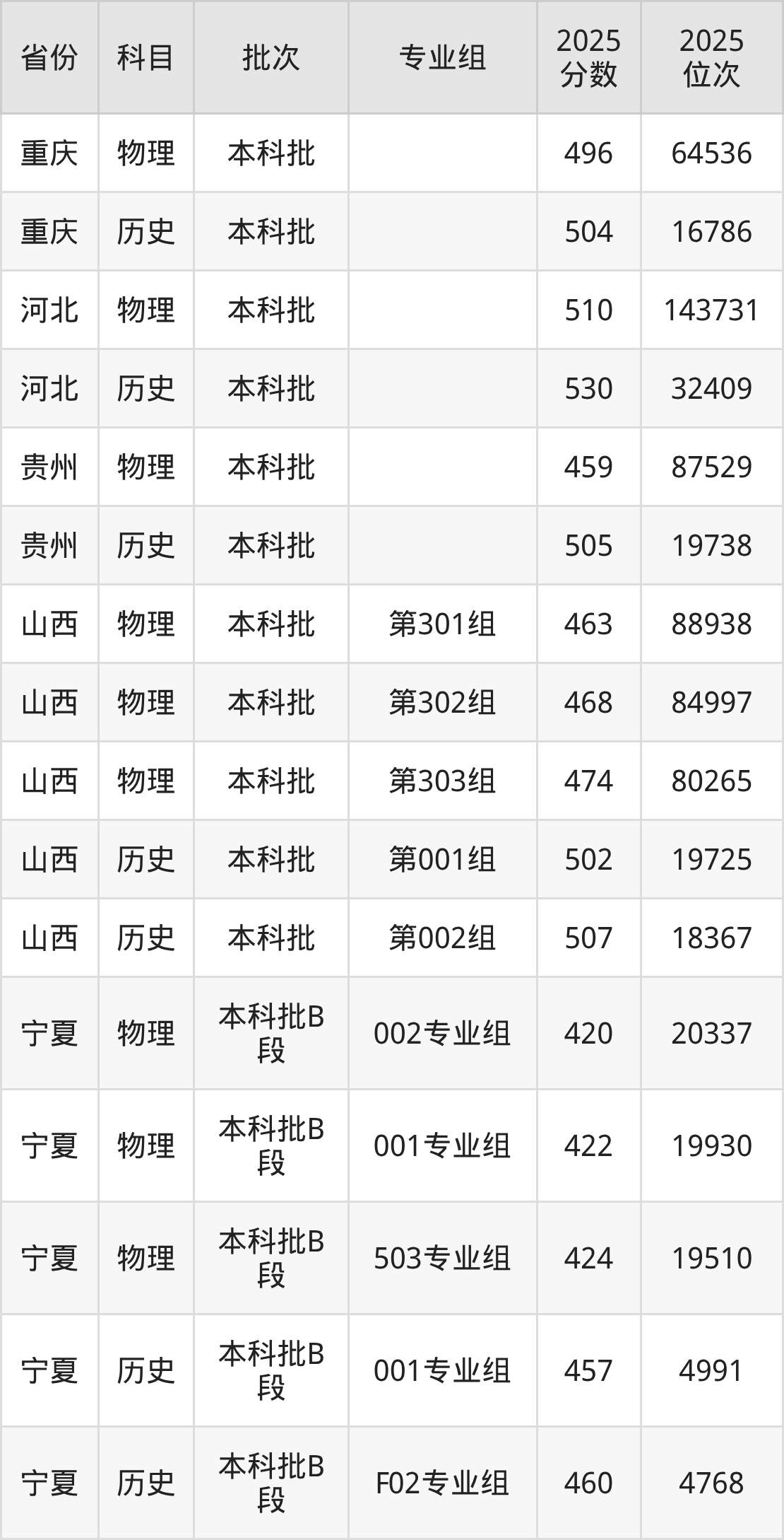 普通类本科物理类最低496分,本科历史类最低504分