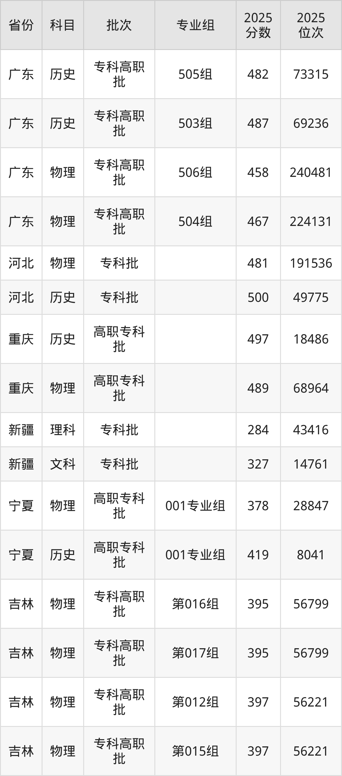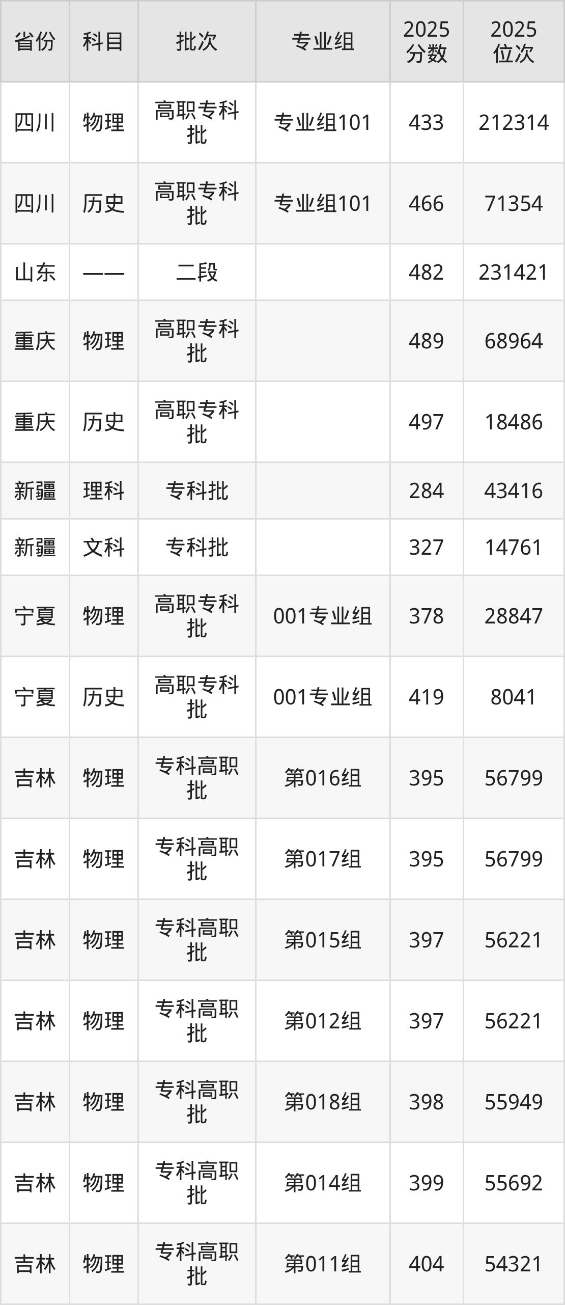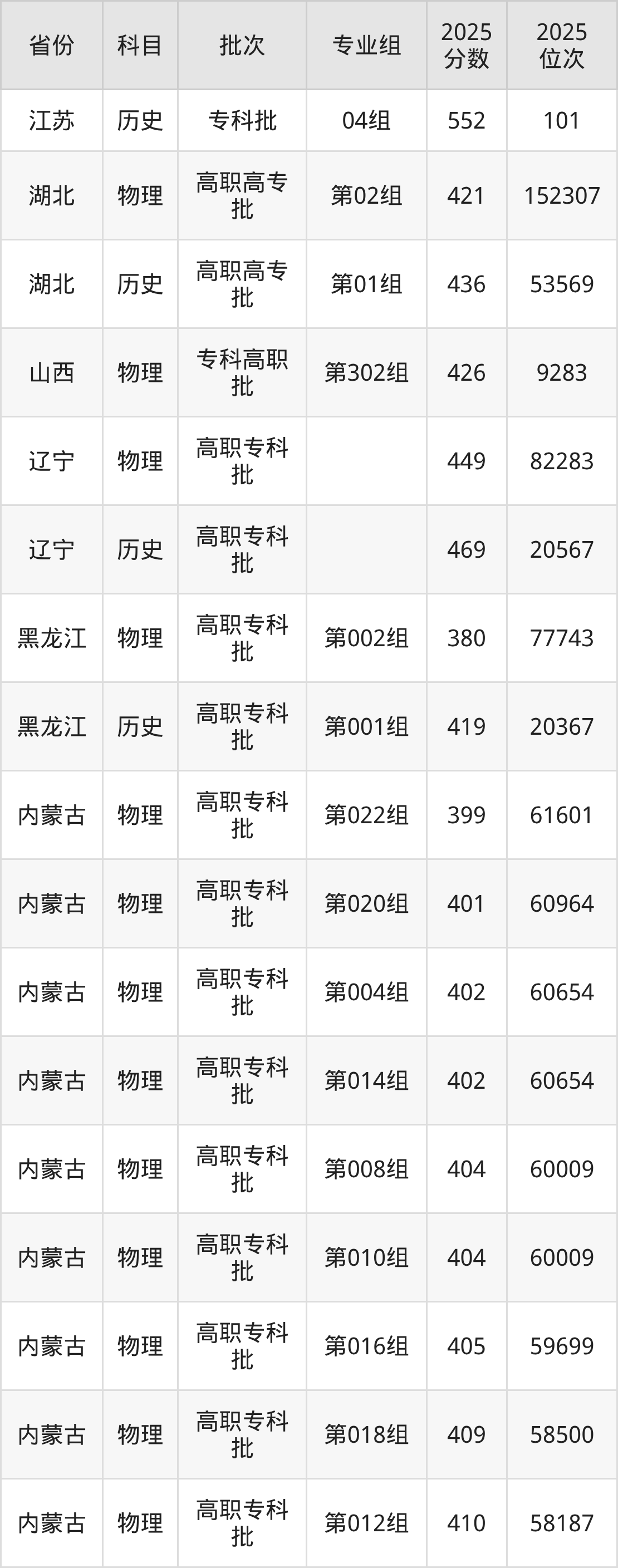 下面是2025年石家庄邮电职业技术学院全国录取分数线一览表,请查阅。