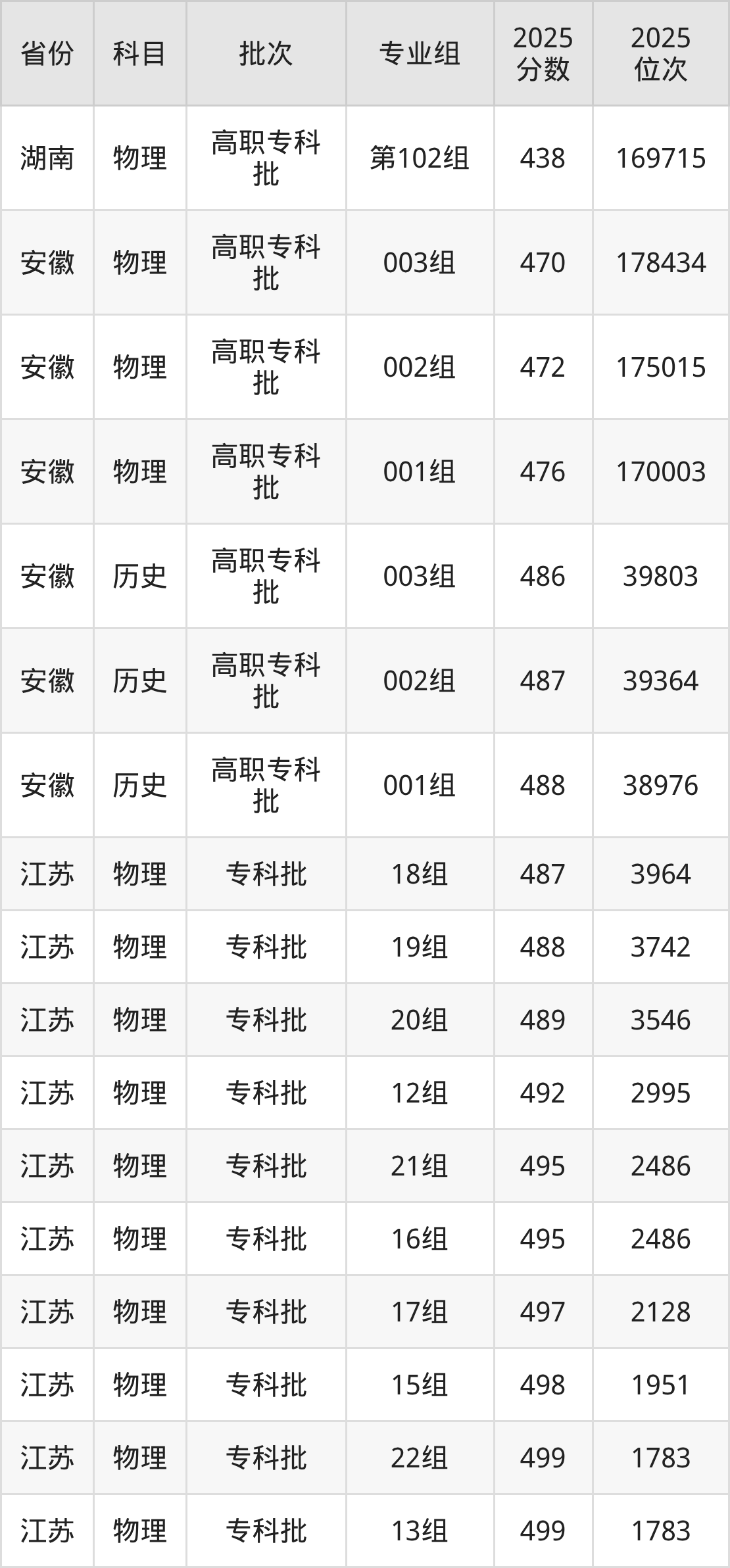 石家庄邮电职业技术学院第008组:2025年投档录取最低分为450分,录取最低位次为13899名。
