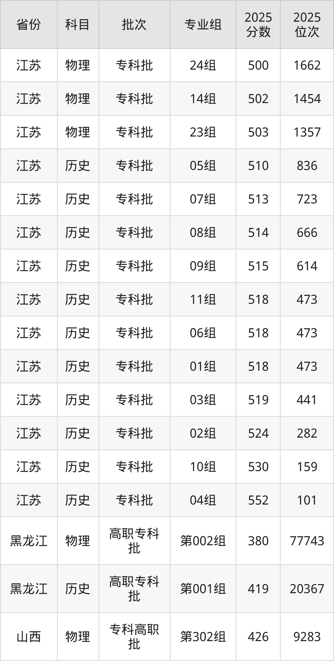 石家庄邮电职业技术学院第010组:2025年投档录取最低分为404分,录取最低位次为60009名。