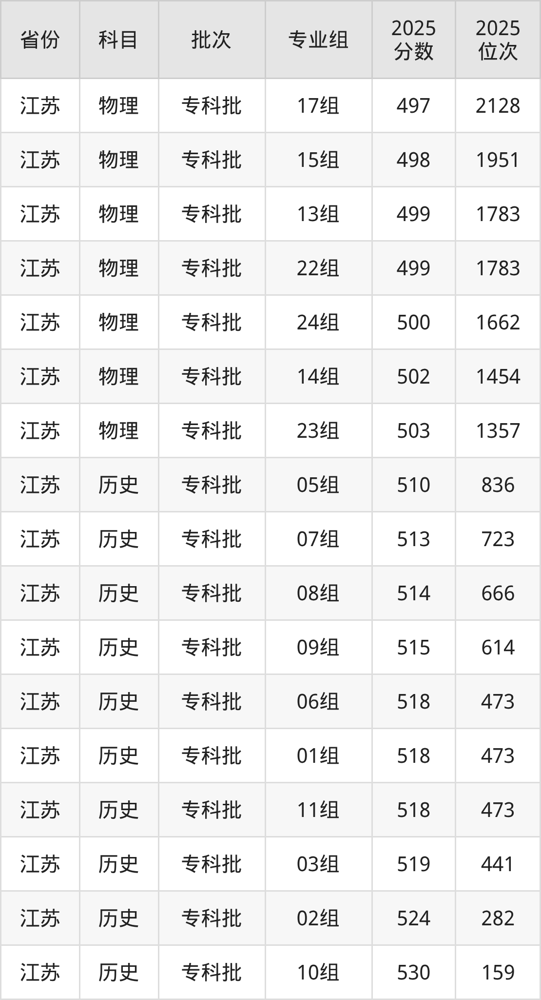 专科历史类投档录取最低500分,专科物理类投档录取最低481分