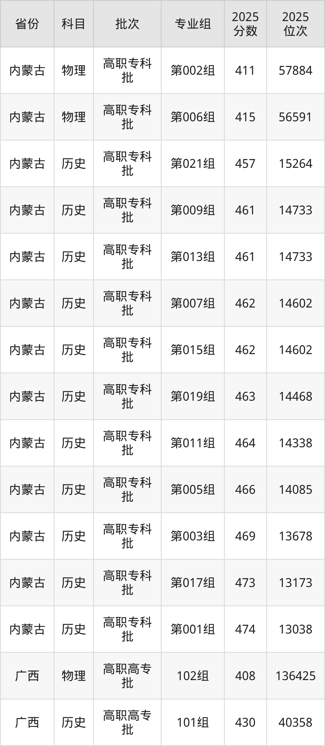 石家庄邮电职业技术学院第010组:2025年投档录取最低分为412分,录取最低位次为52024名。