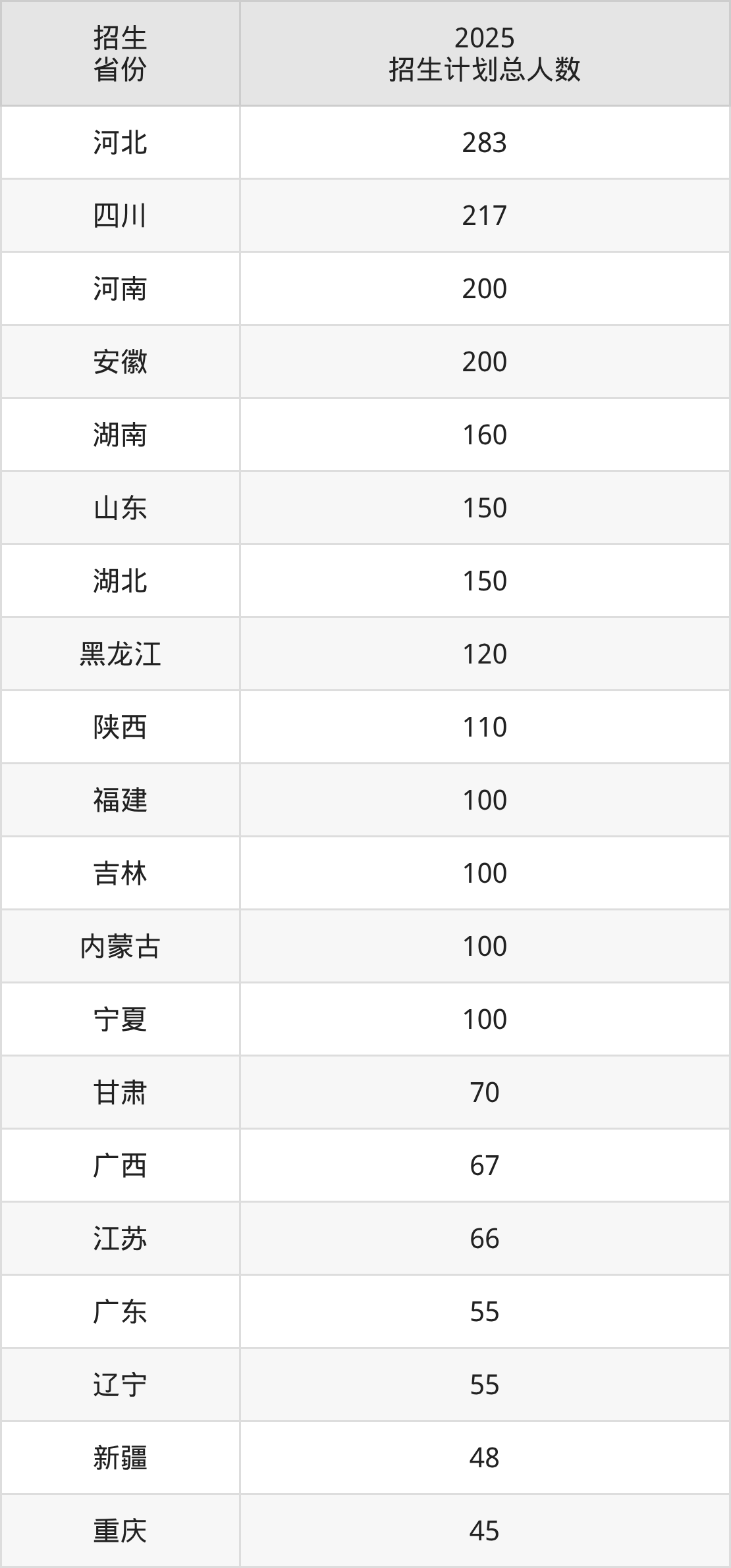 2025年石家庄邮电职业技术学院面向全国24个省市开展专科招生;招生专业共17个,招生人数共2481人。2025年在河北省招生计划总人数是283人,其中,石家庄邮电职业技术学院在河北省招生人数最多的是财务会计类。石家庄邮电职业技术学院在各省具体招生人数情况如下表。