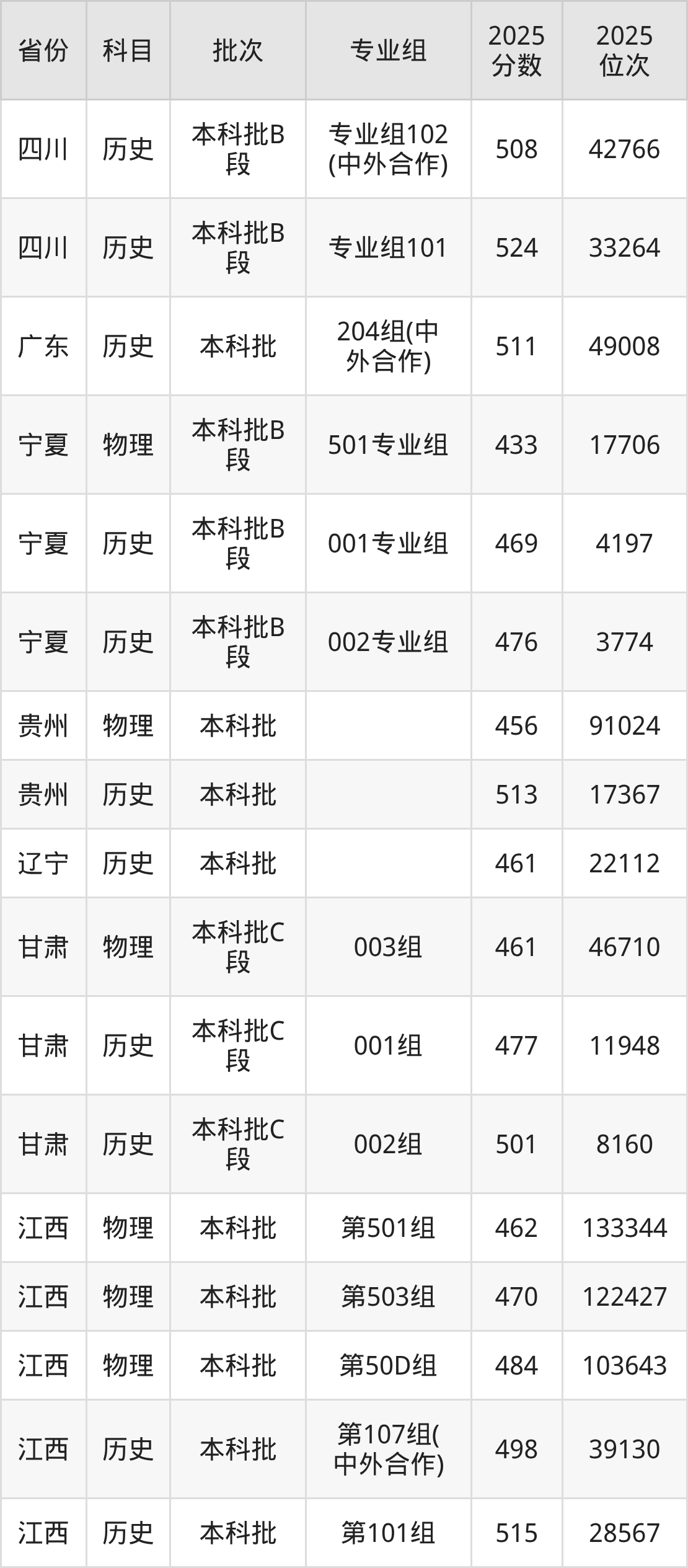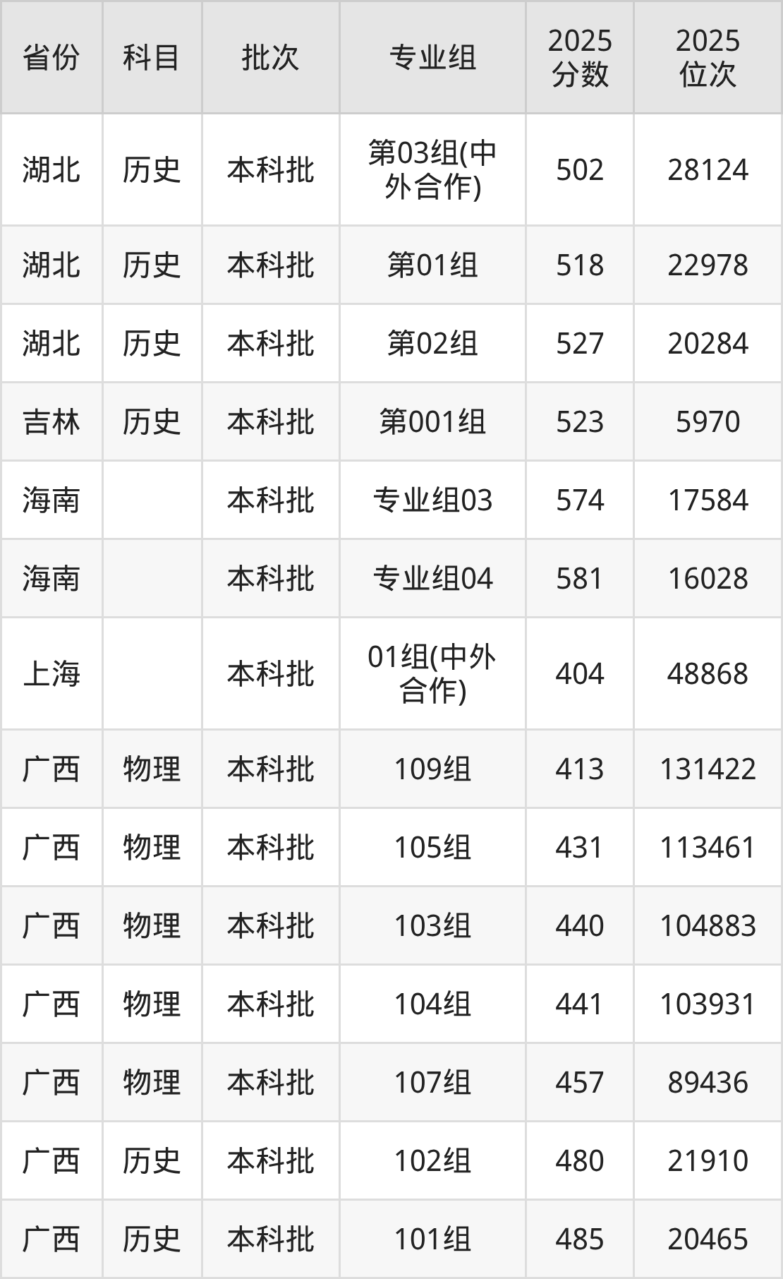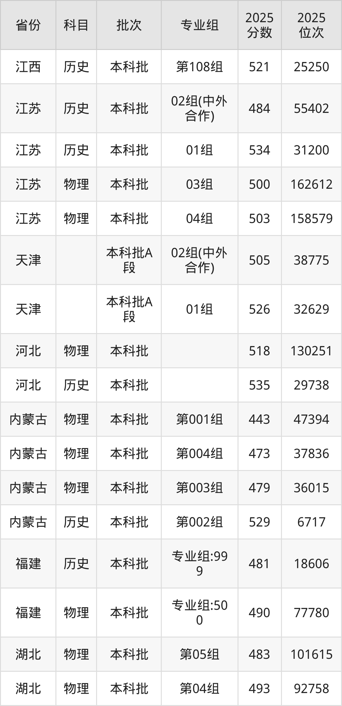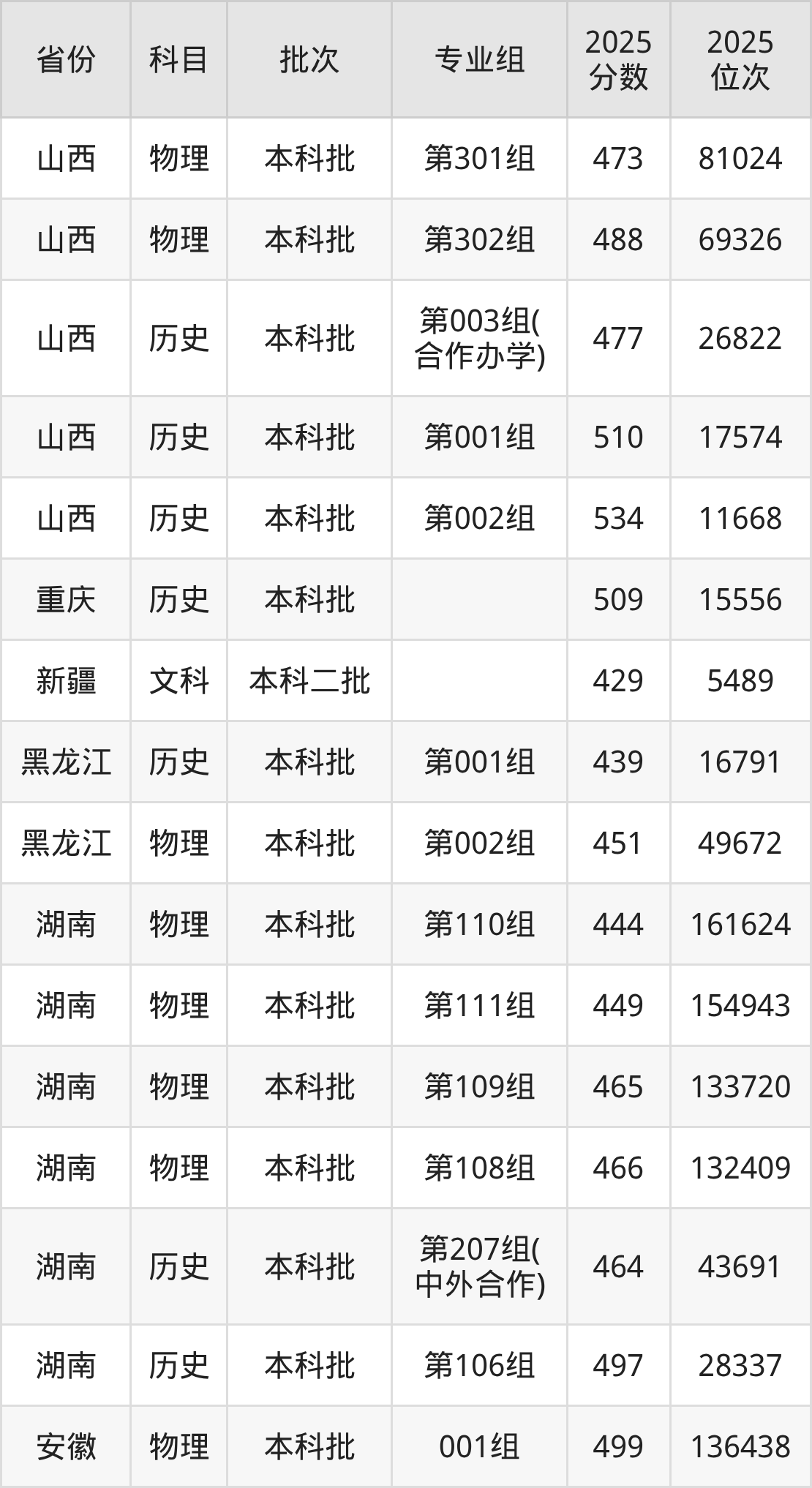 2025年在本科历史类进行招生,各专业组分数线详情如下: