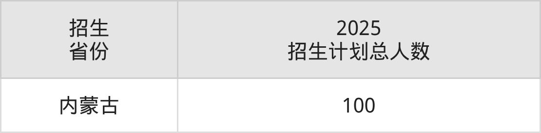 2025年内蒙古警察学院面向全国1个省市开展本科招生;招生专业共1个,招生人数共100人。