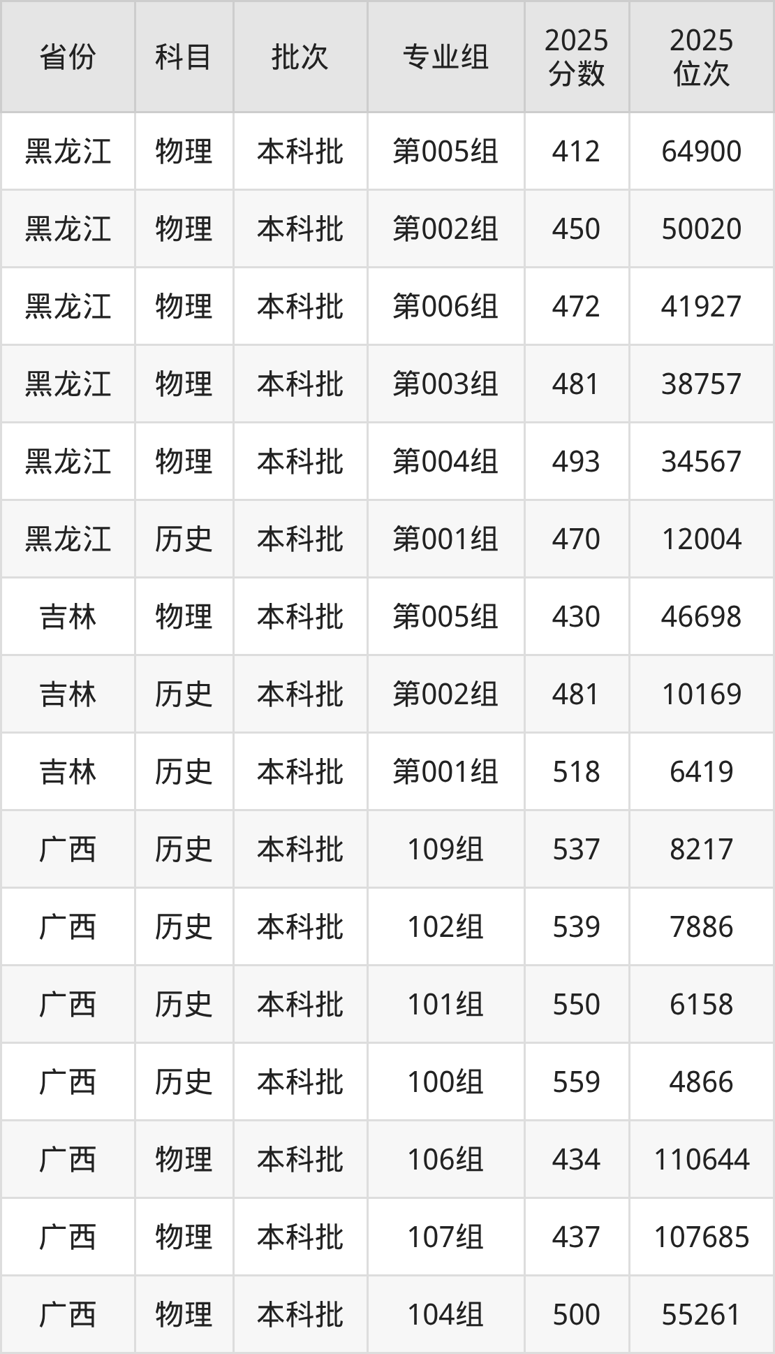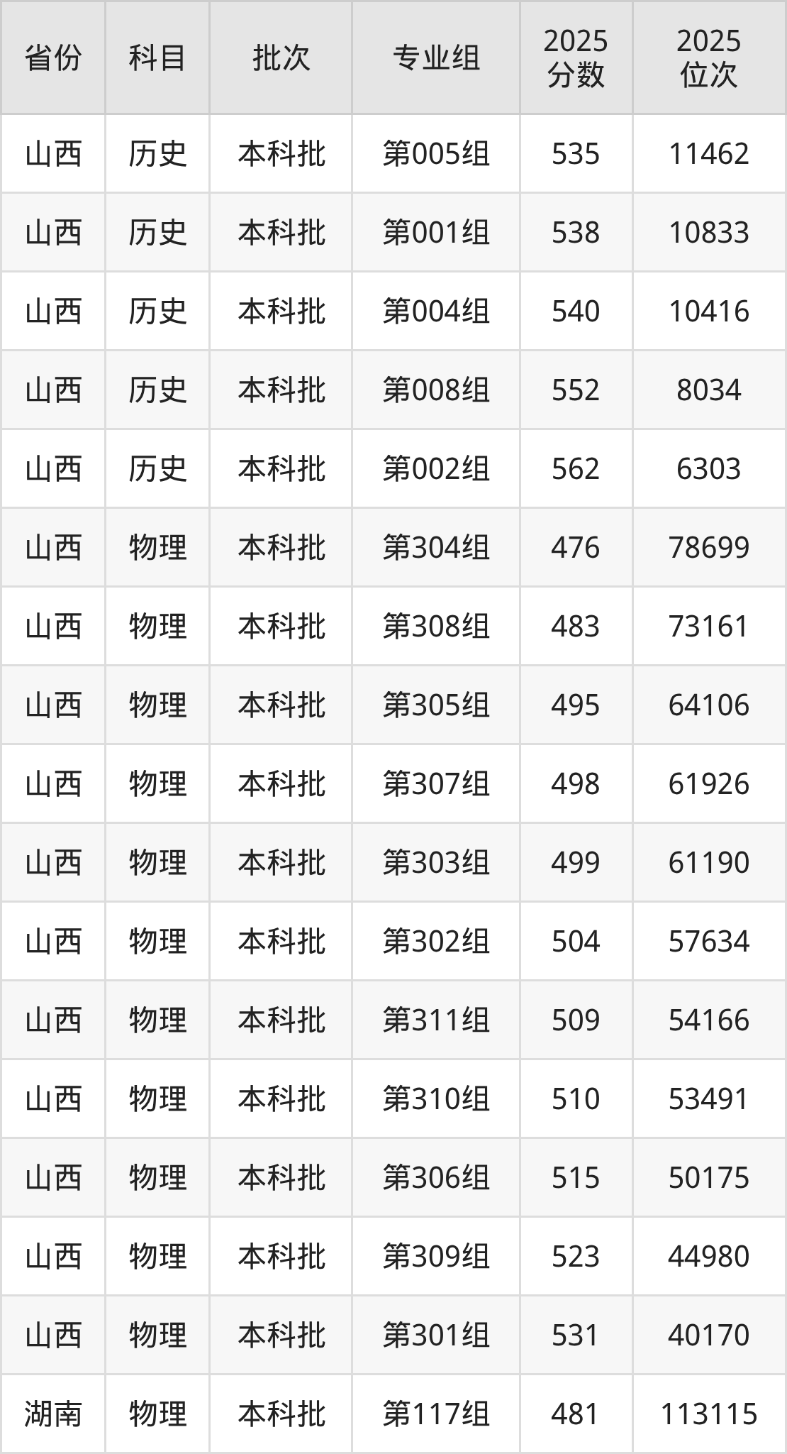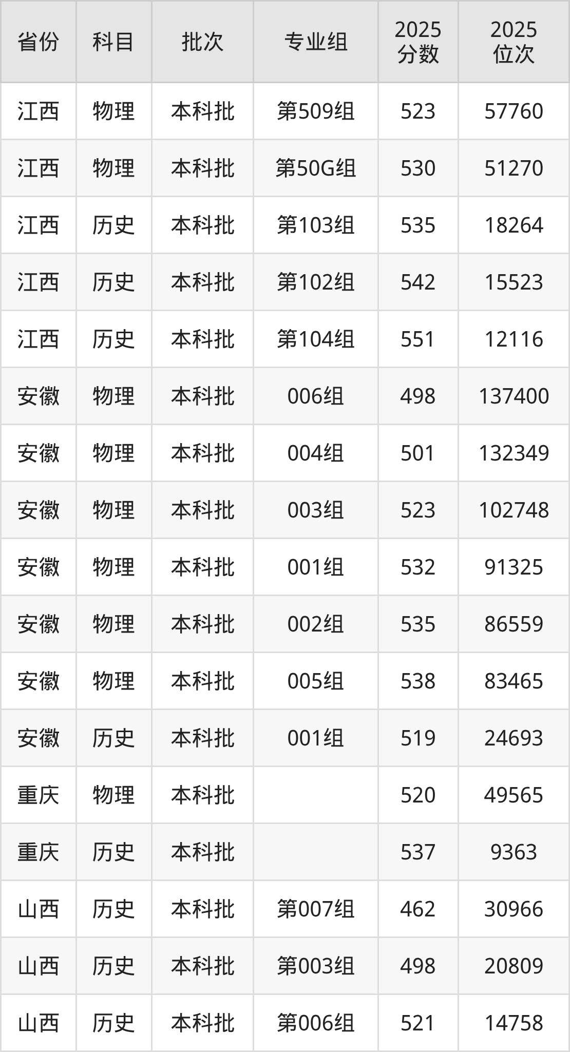 2025年投档录取最低分为537分,录取最低位次为9363名。