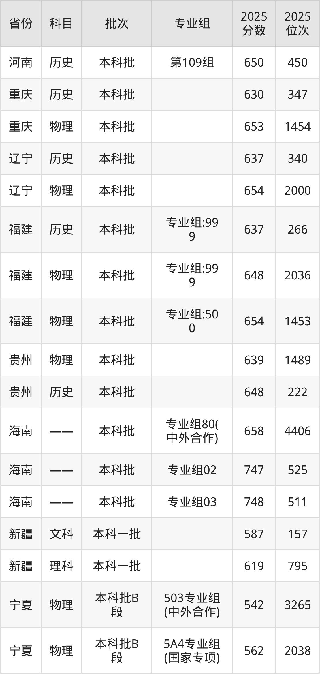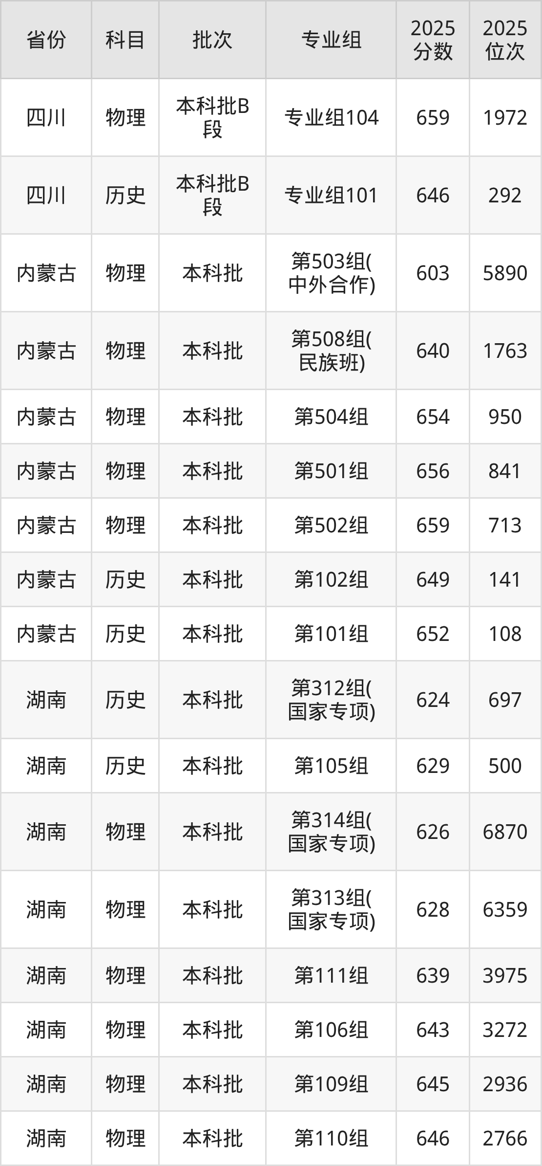 2025年投档录取最低分为653分,录取最低位次为1454名。