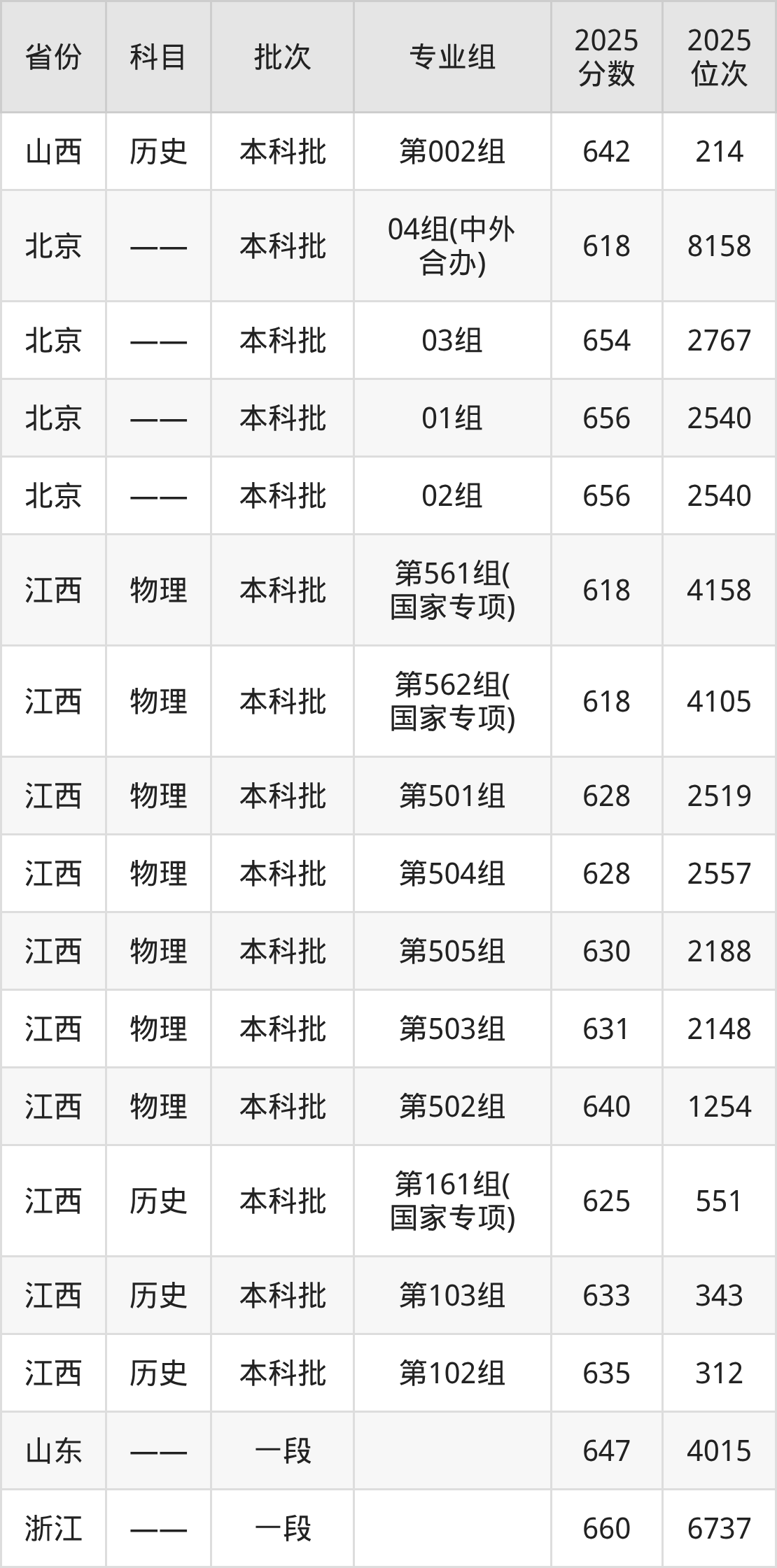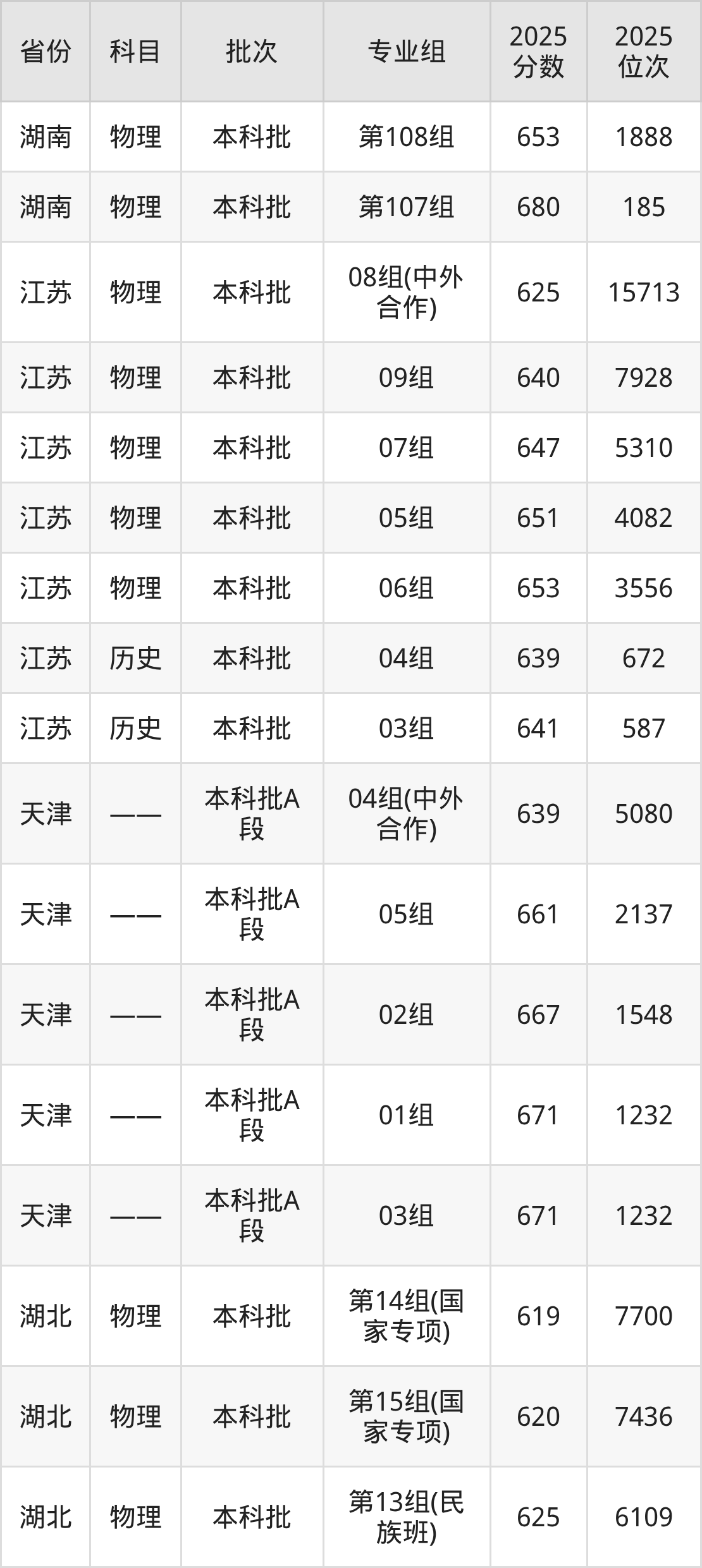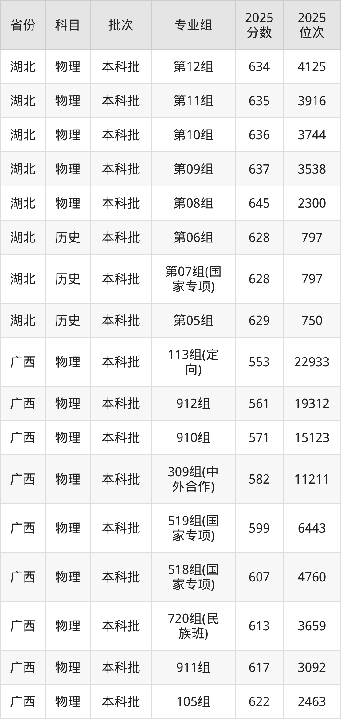 下面是2025年武汉大学全国录取分数线一览表,请查阅。