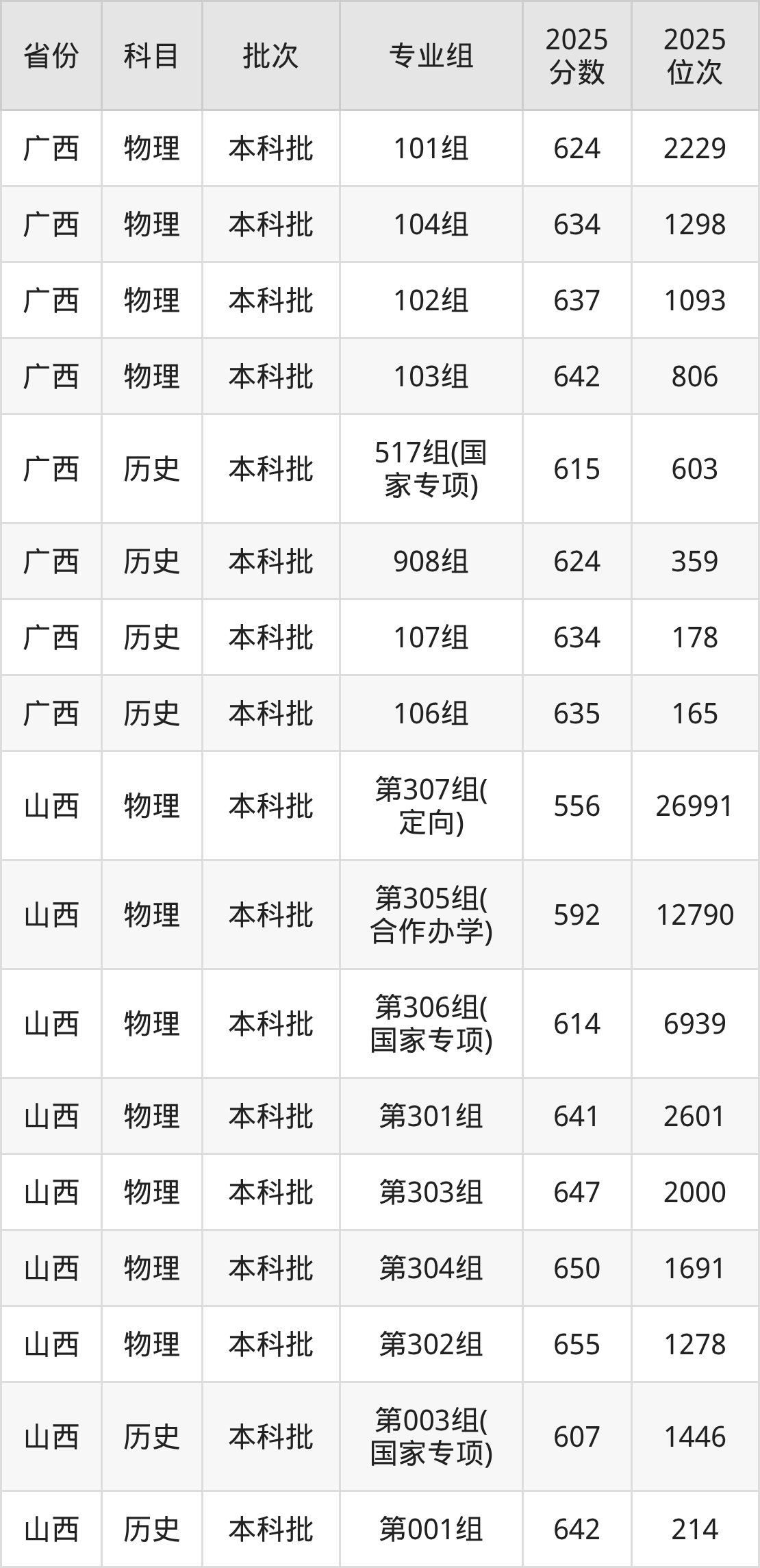 2025年投档录取最低分为637分,录取最低位次为340名。