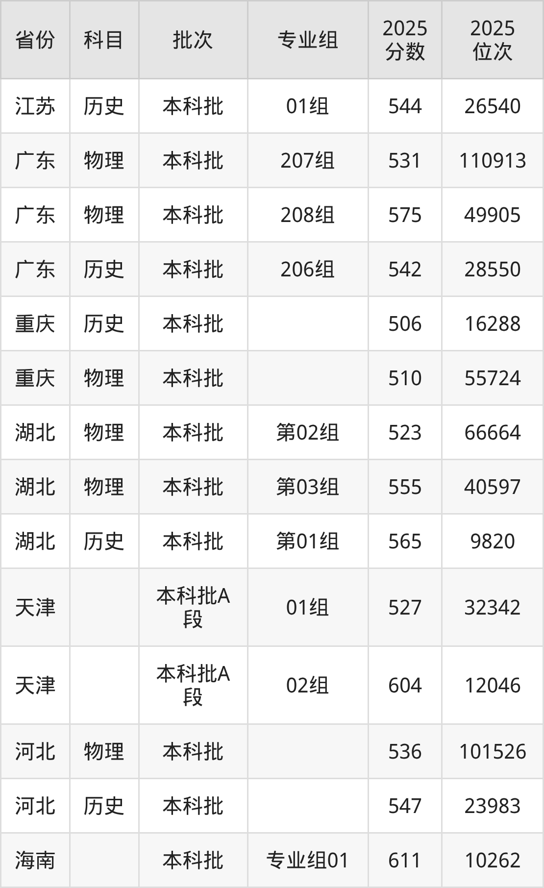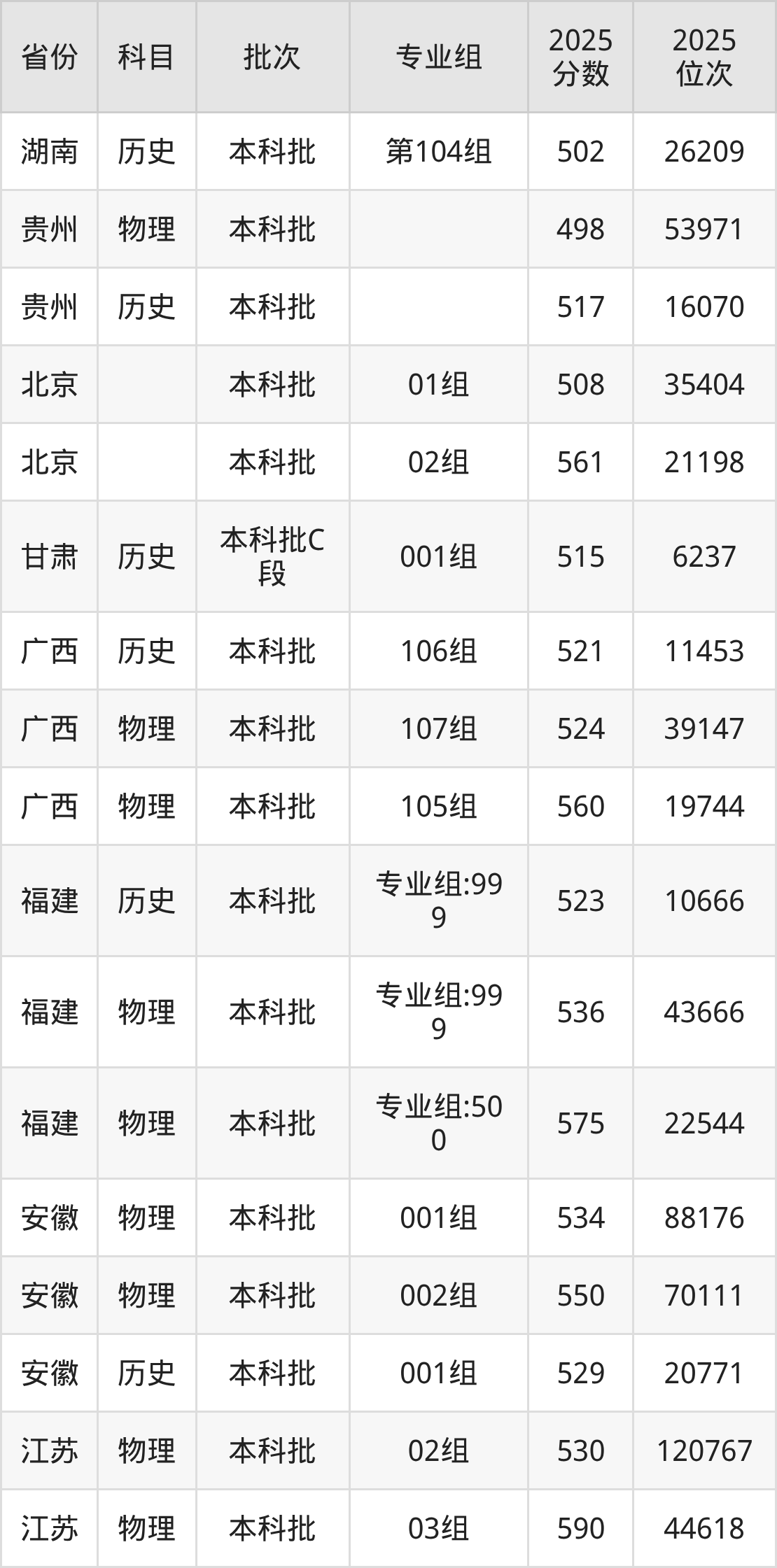 2025年在本科历史类进行招生,各专业组分数线详情如下: