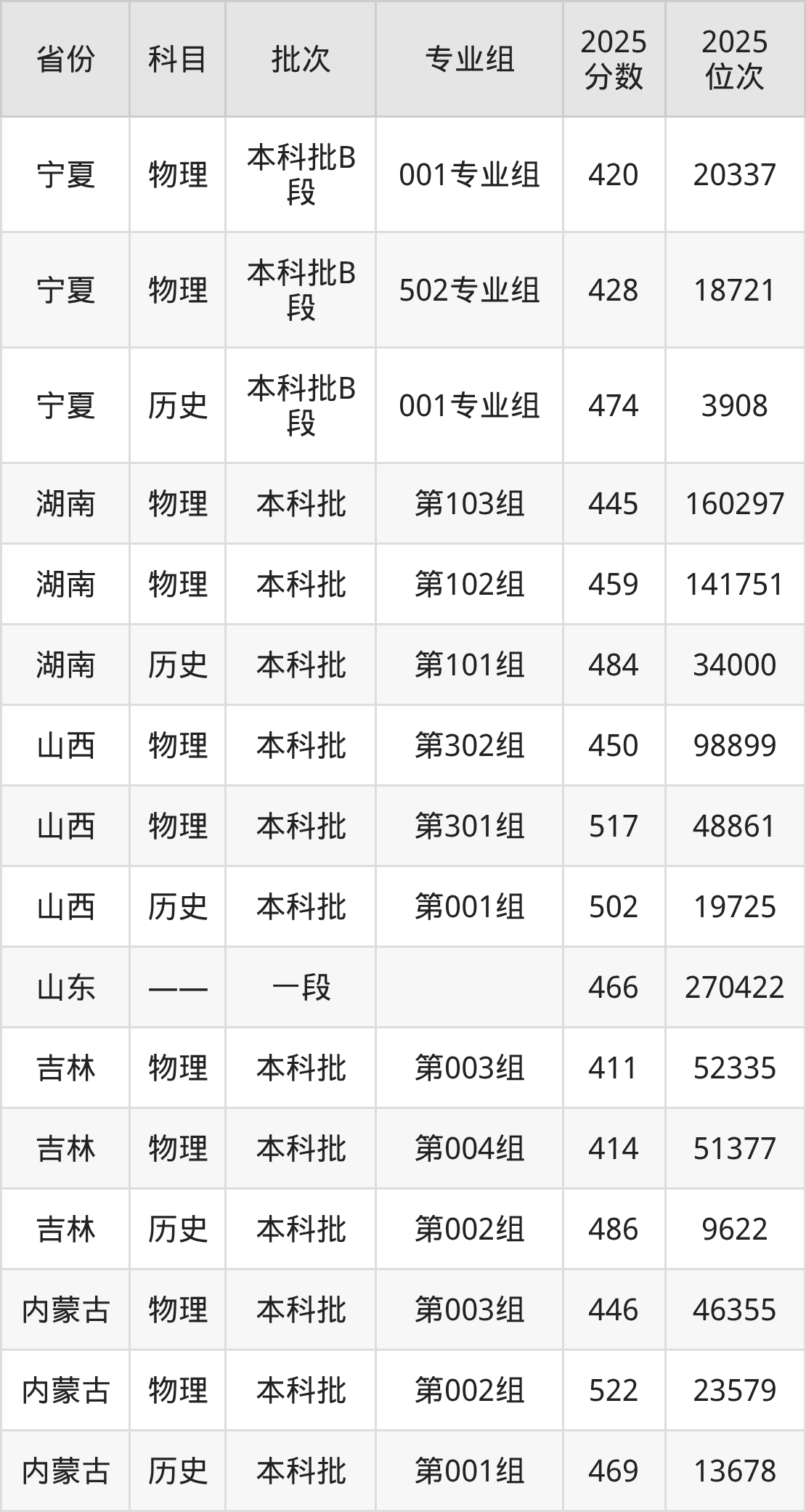 2025年投档录取最低分为501分,录取最低位次为17460名。