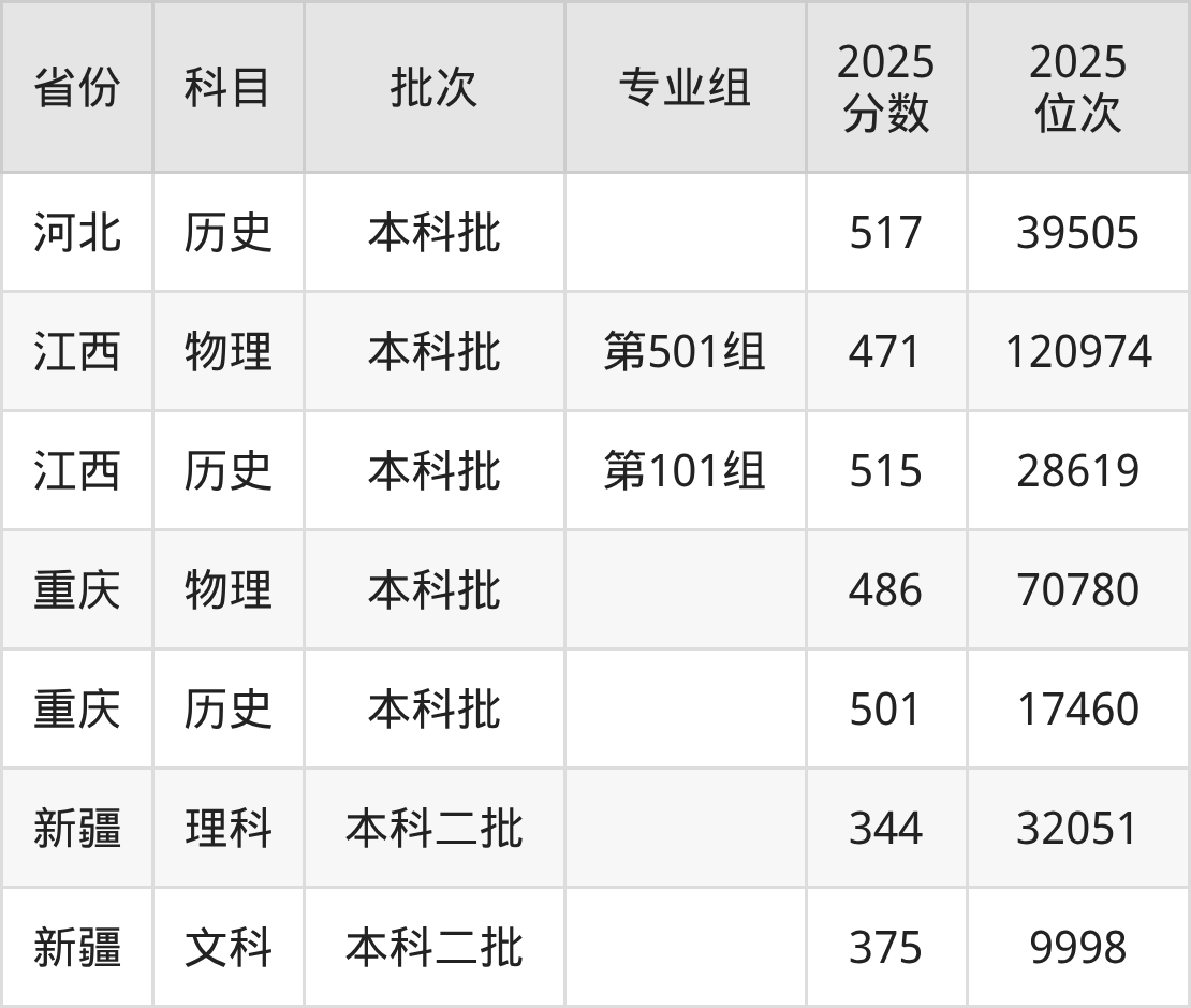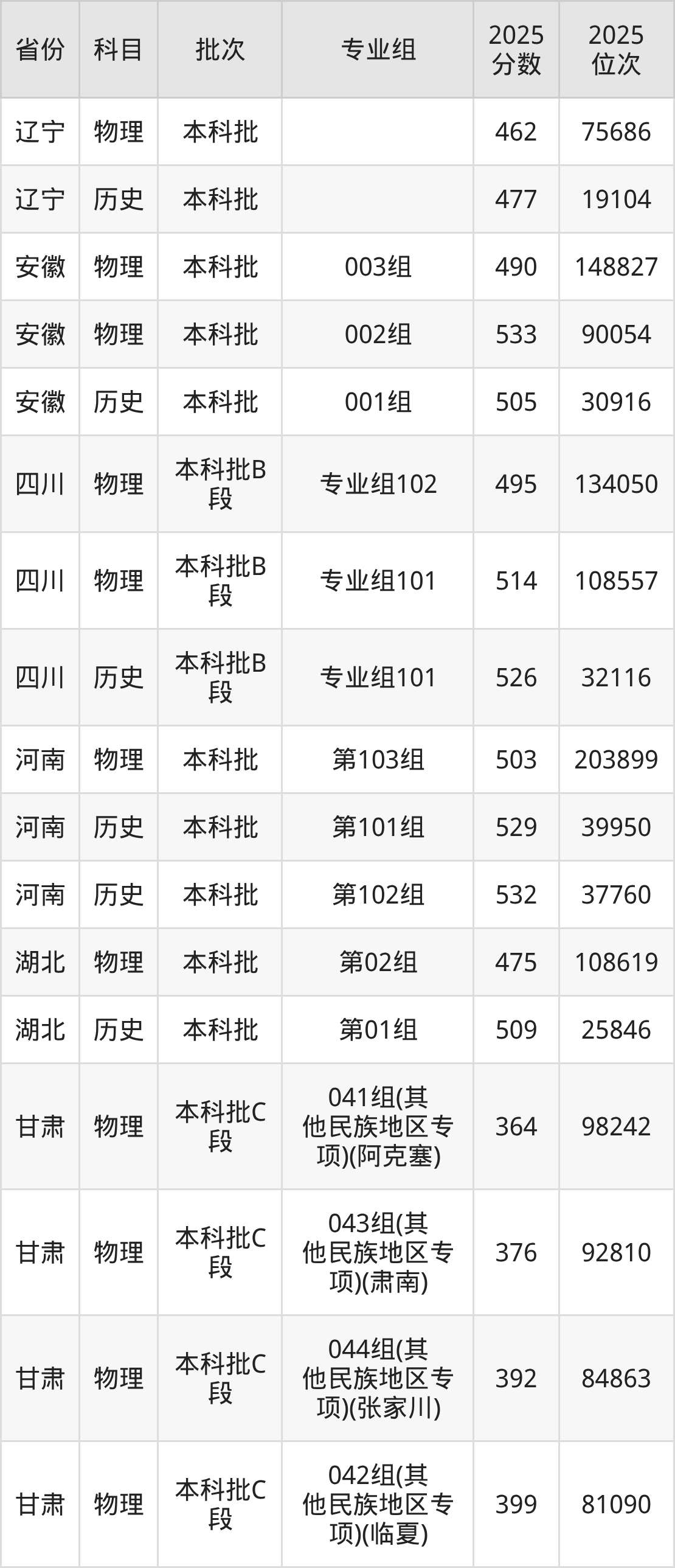2025年投档录取最低分为375分,录取最低位次为9998名。