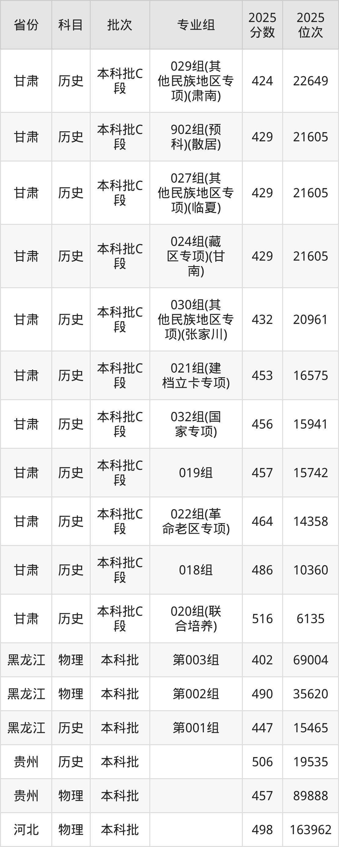 2025年投档录取最低分为498分,录取最低位次为163962名。