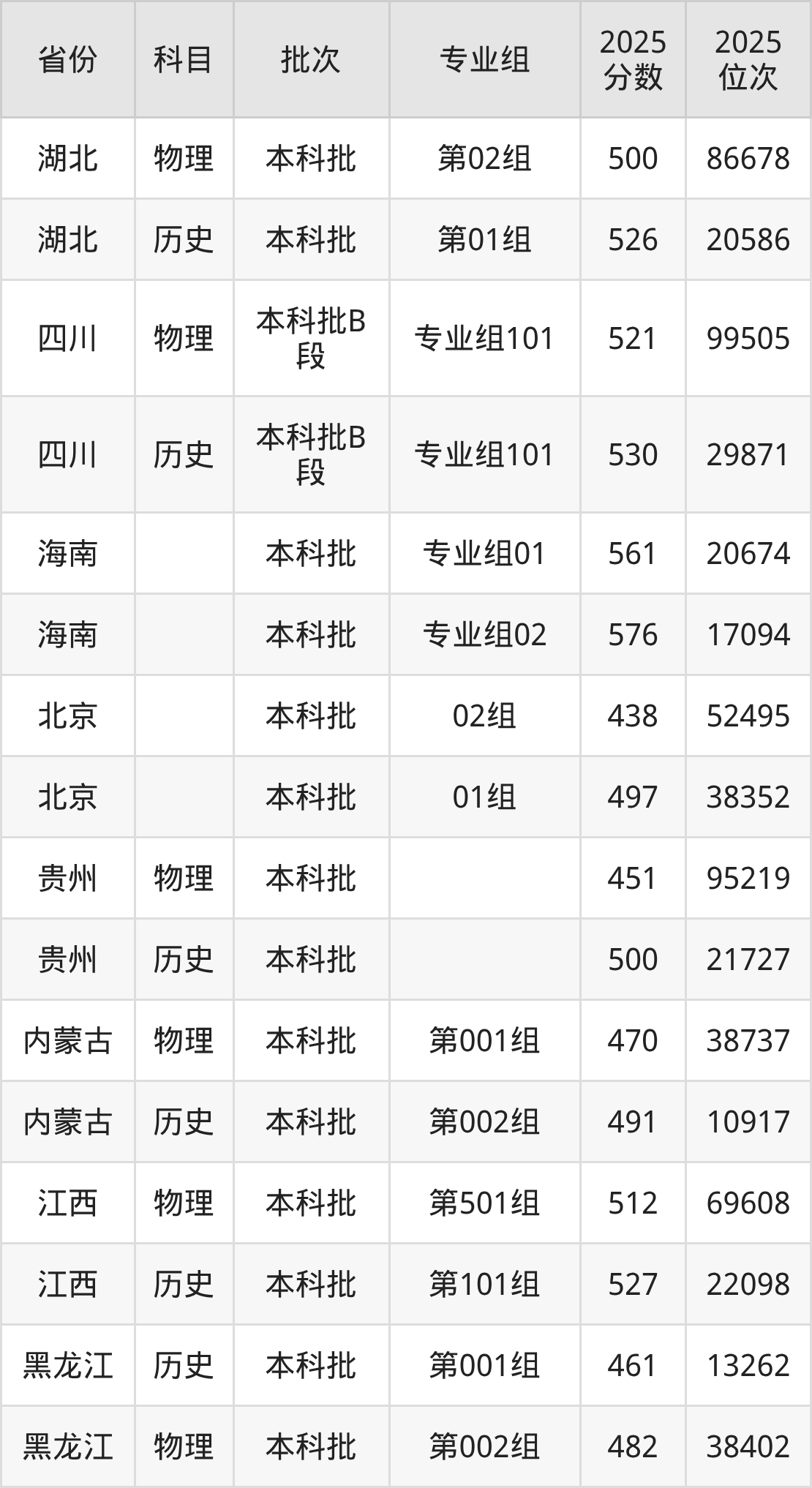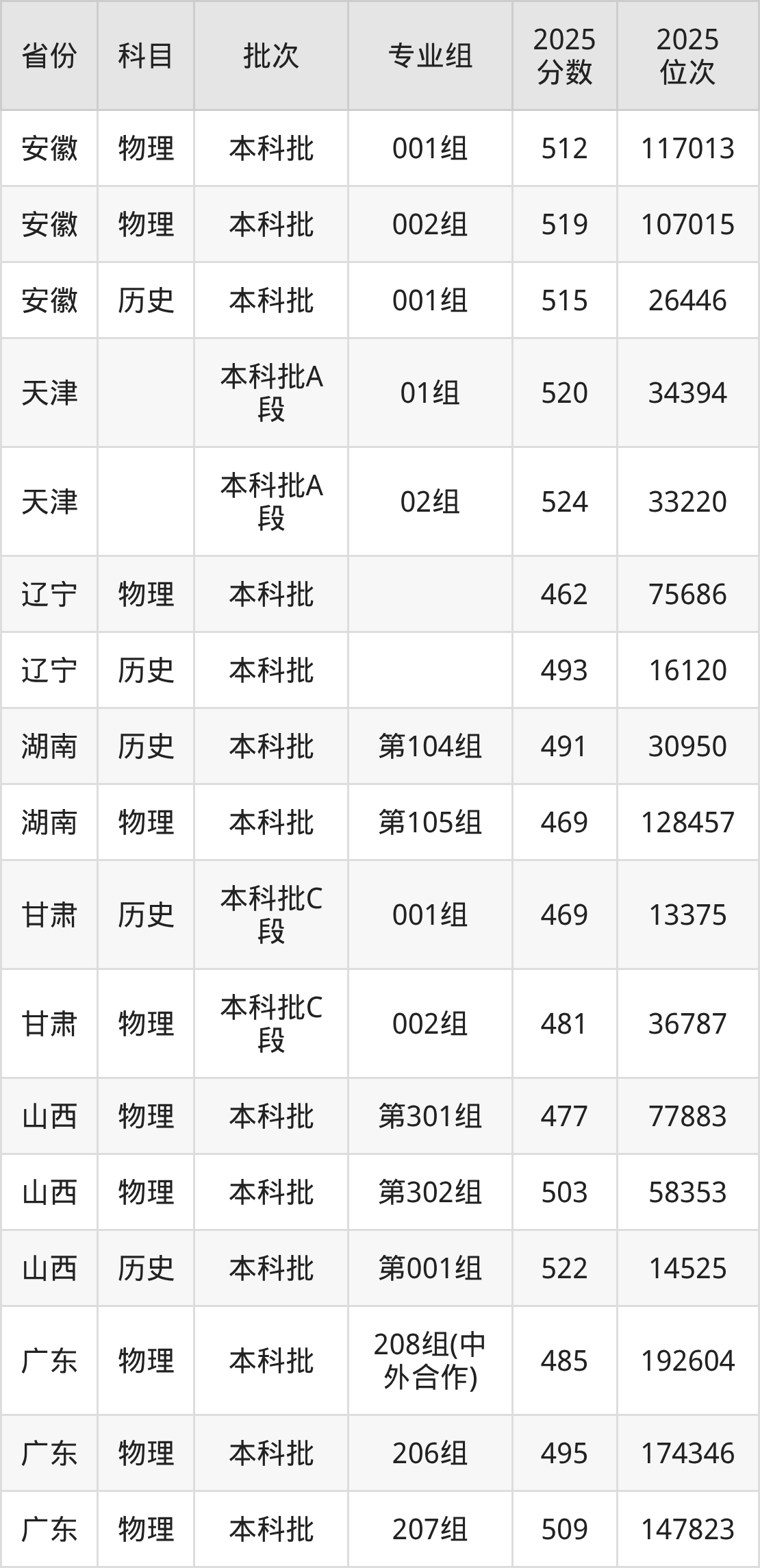 普通类本科物理类最低462分,本科历史类最低493分