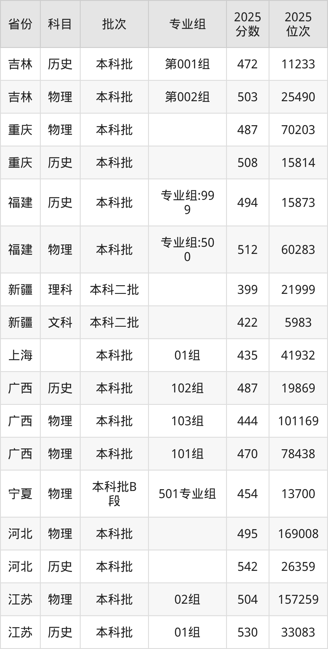 2025年投档录取最低分为493分,录取最低位次为16120名。