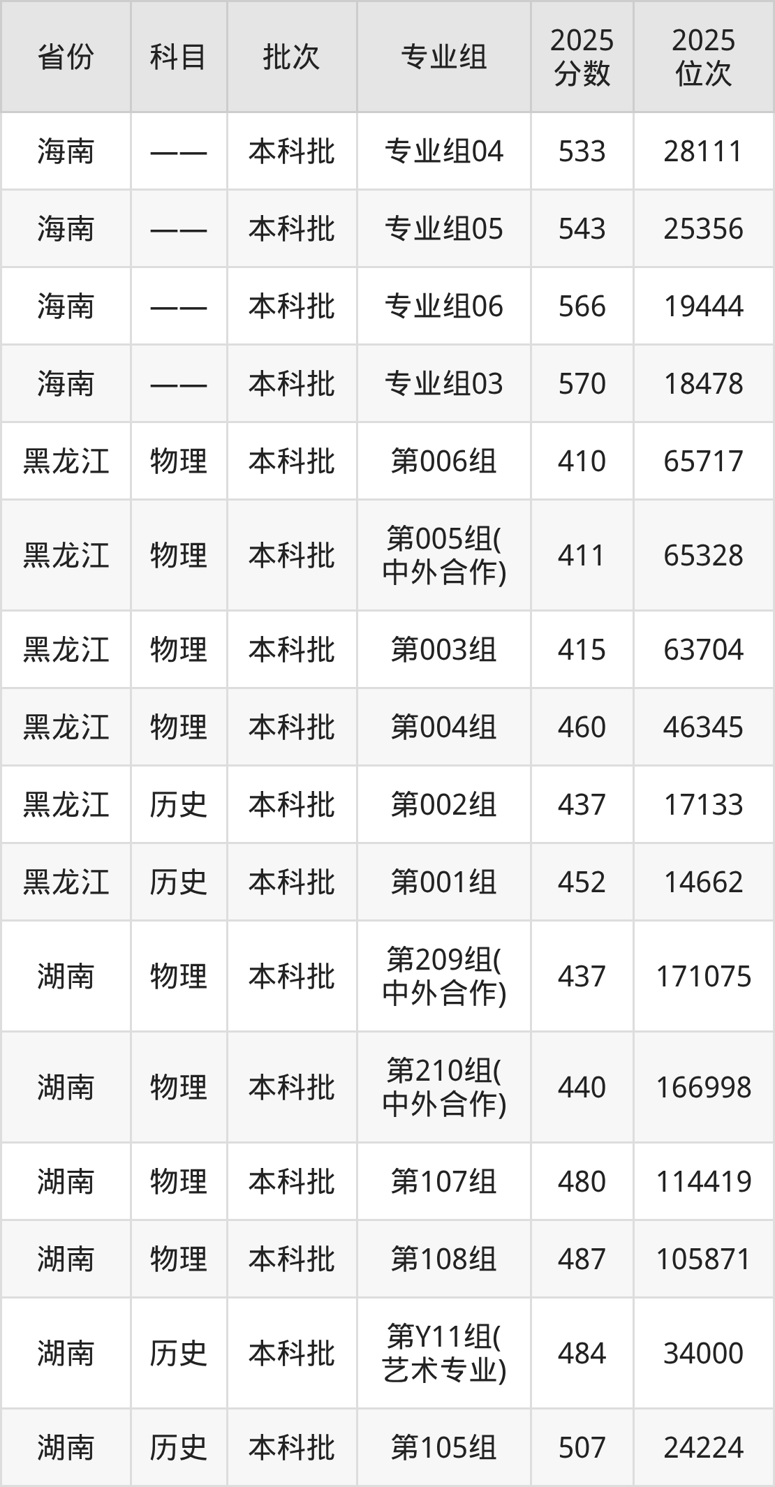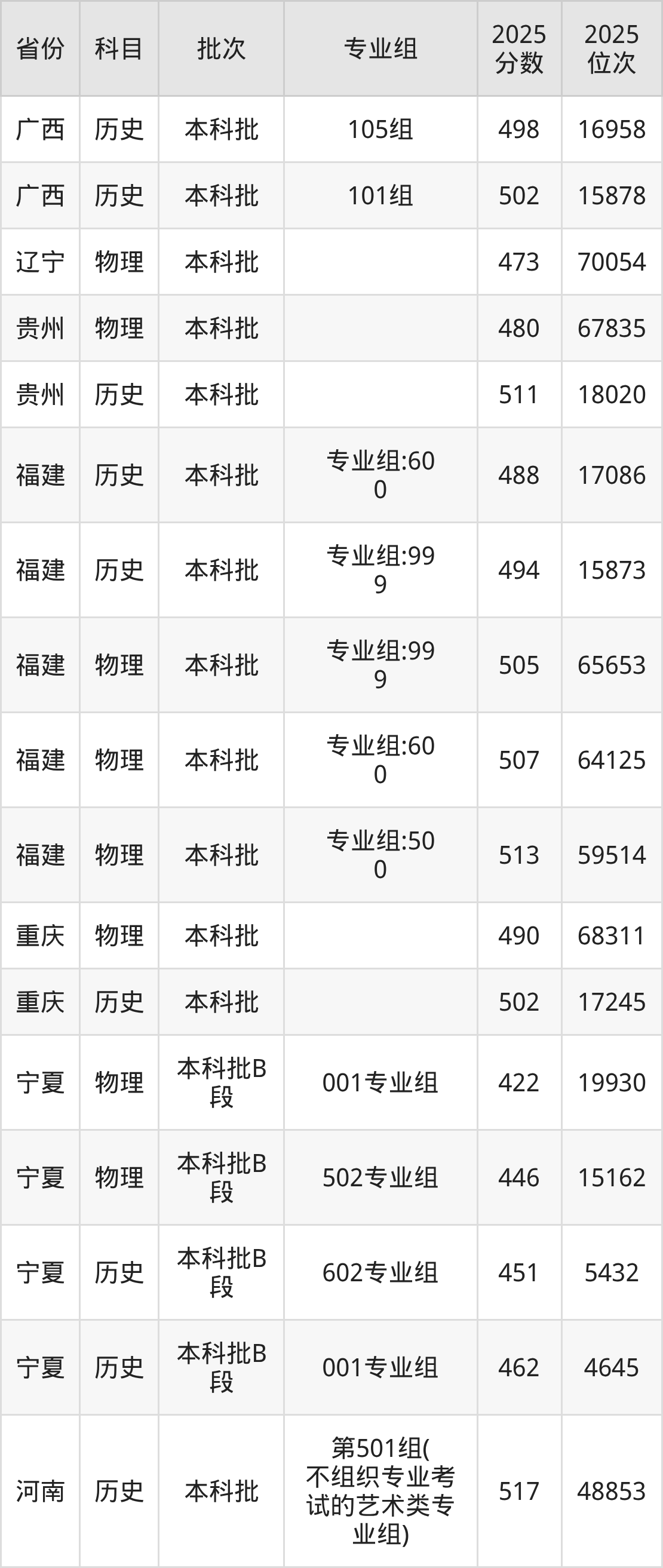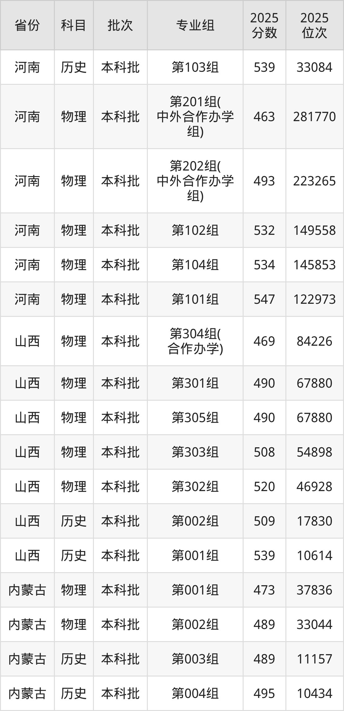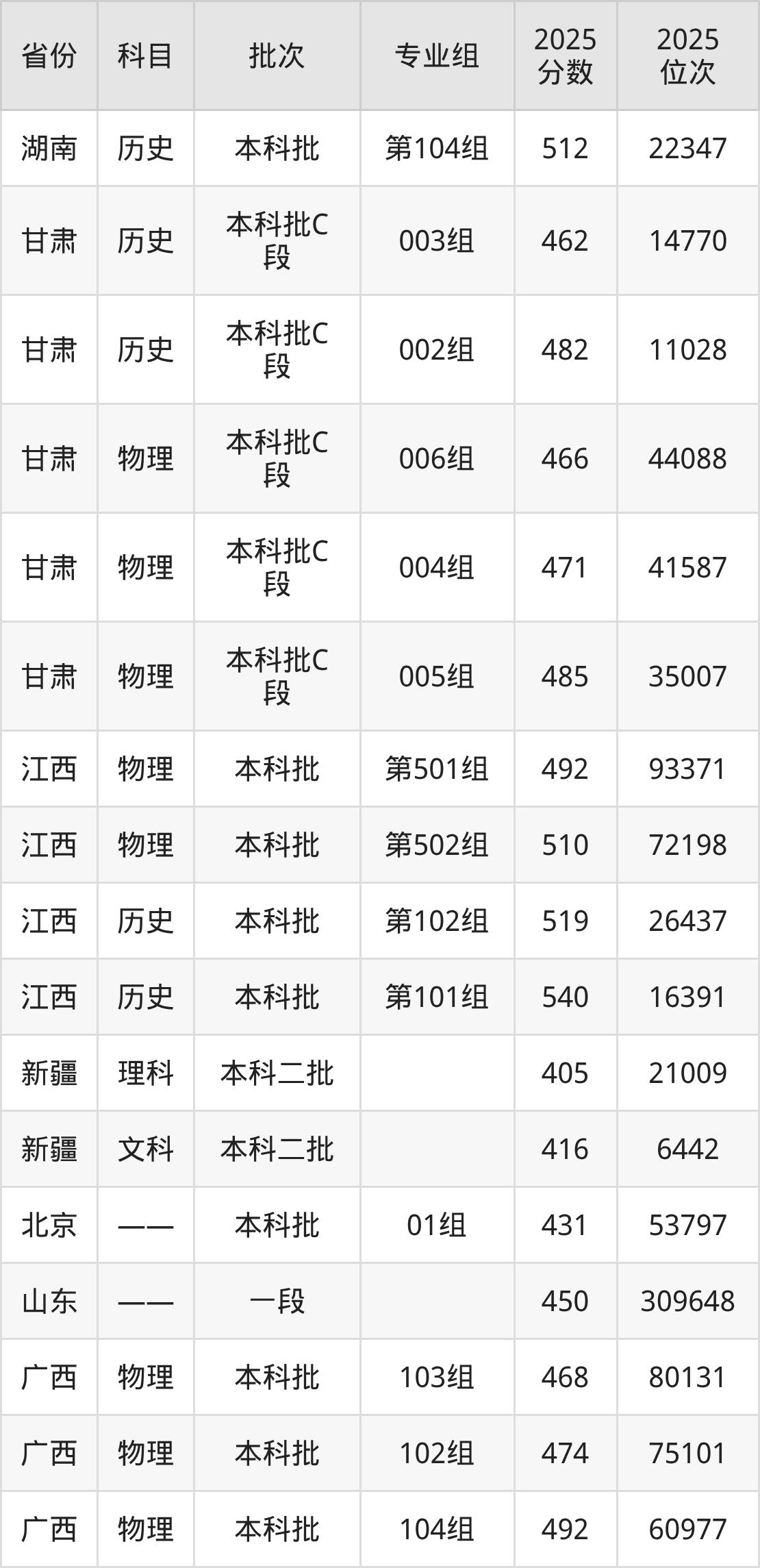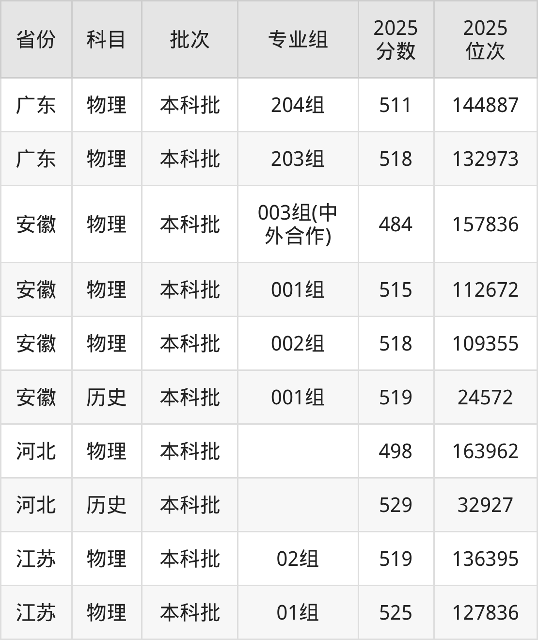 2025年在本科物理类进行招生,各专业组分数线详情如下: