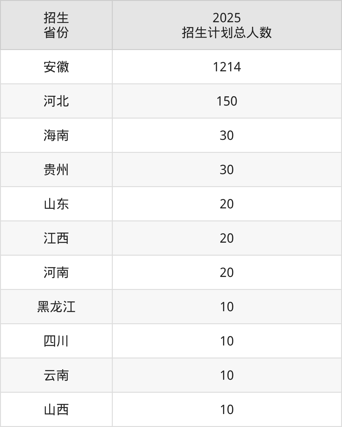 2025年安徽国防科技职业学院面向全国11个省市开展专科招生;招生专业共29个,招生人数共1524人。2025年在安徽省招生计划总人数是1214人,其中,安徽国防科技职业学院在安徽省招生人数最多的是软件技术。安徽国防科技职业学院在各省具体招生人数情况如下表。