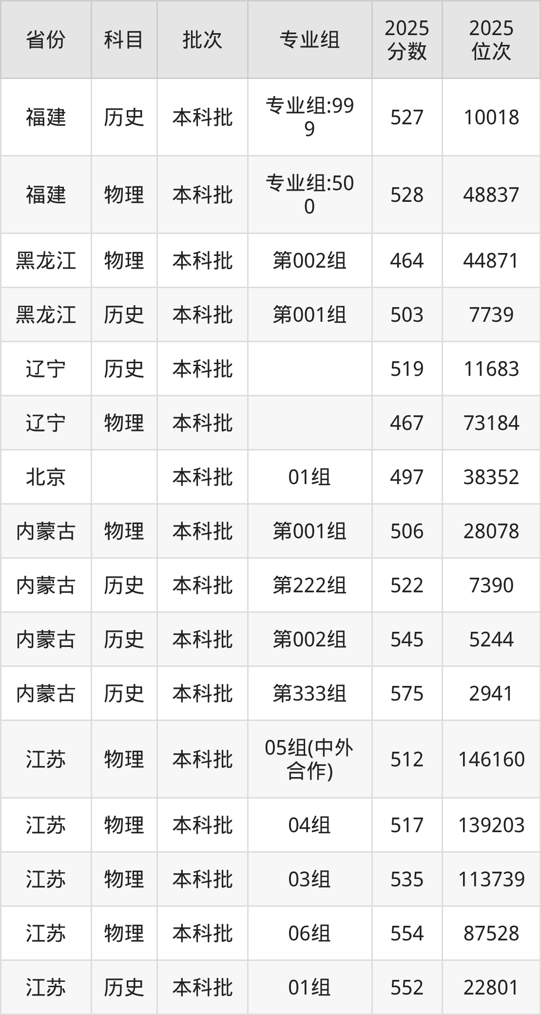 江苏海洋大学专业组102:2025年投档录取最低分为551分,录取最低位次为19685名。