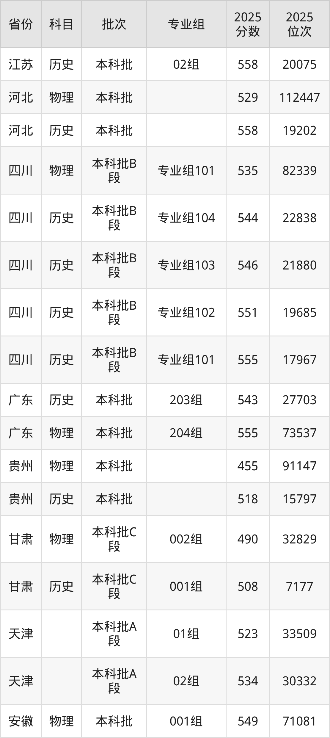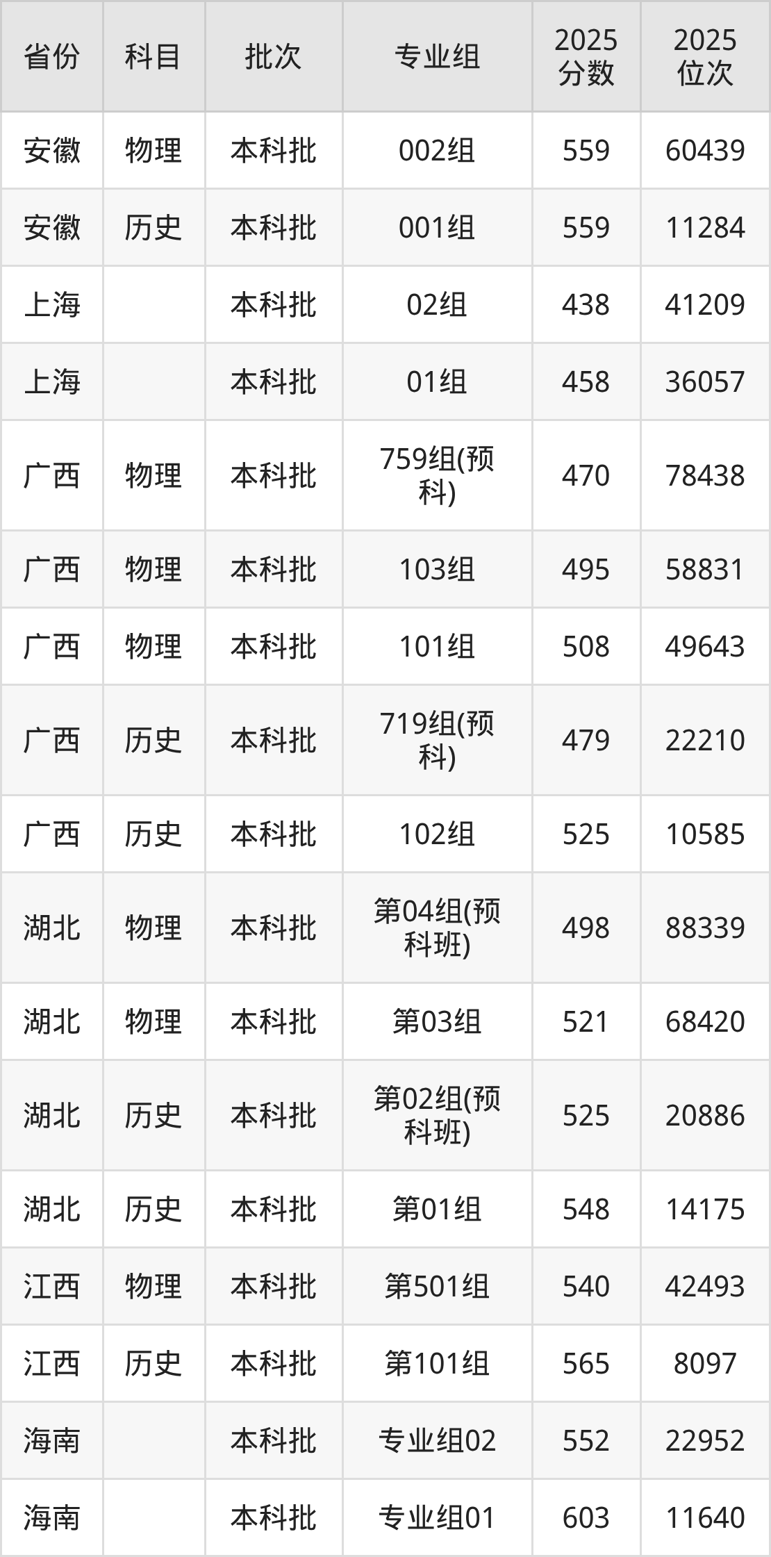 2025年投档录取最低分为467分,录取最低位次为73184名。