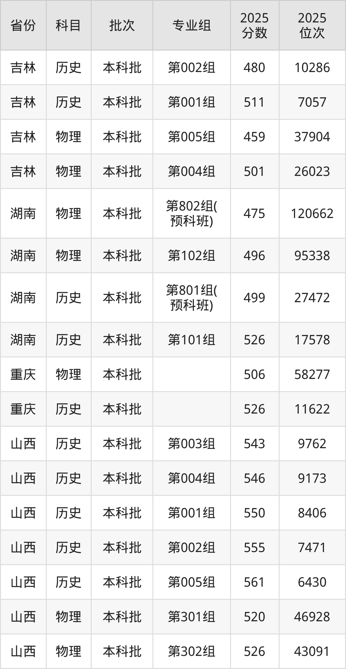 2025年投档录取最低分为518分,录取最低位次为15797名。