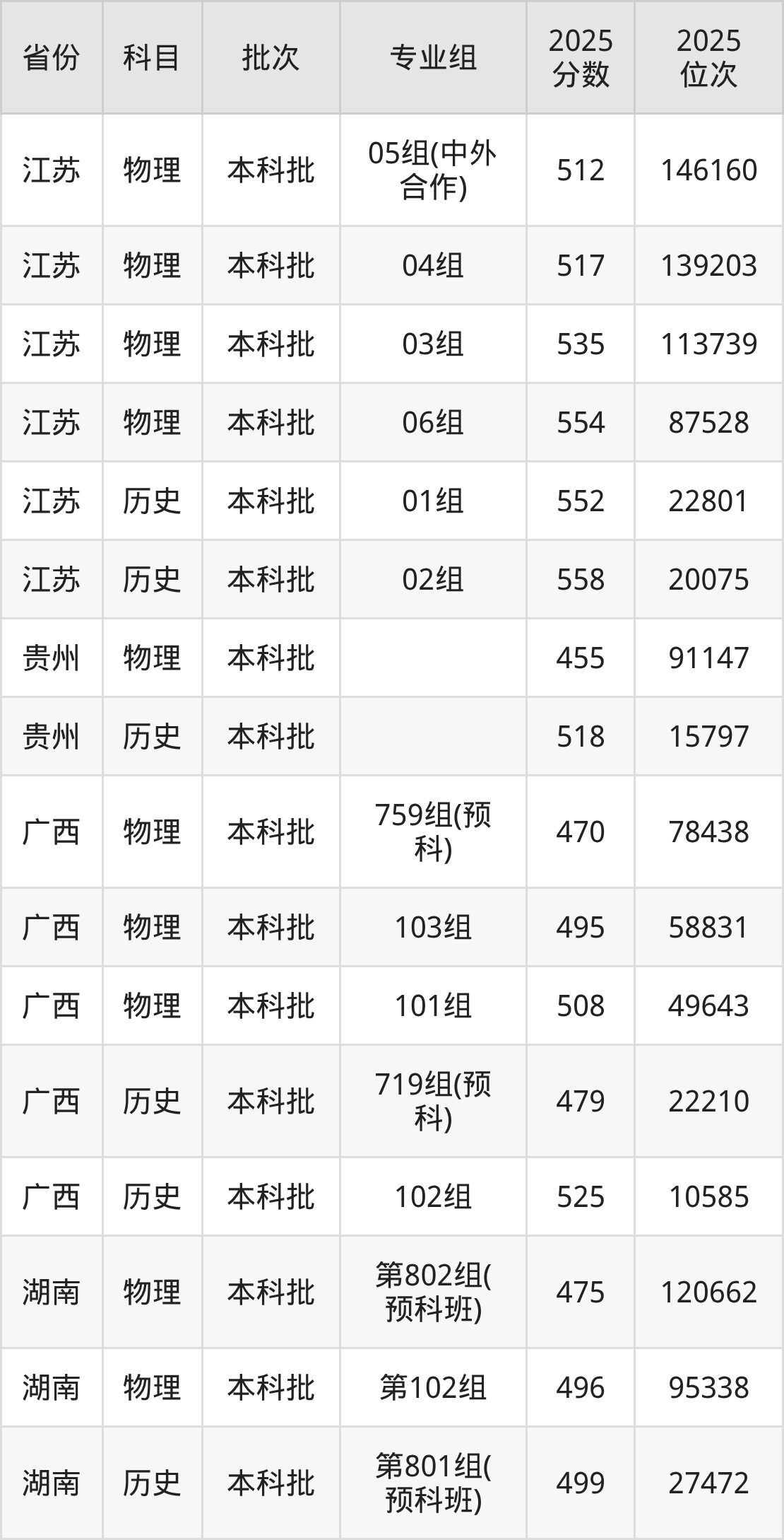 2025年投档录取最低分为558分,录取最低位次为19202名。
