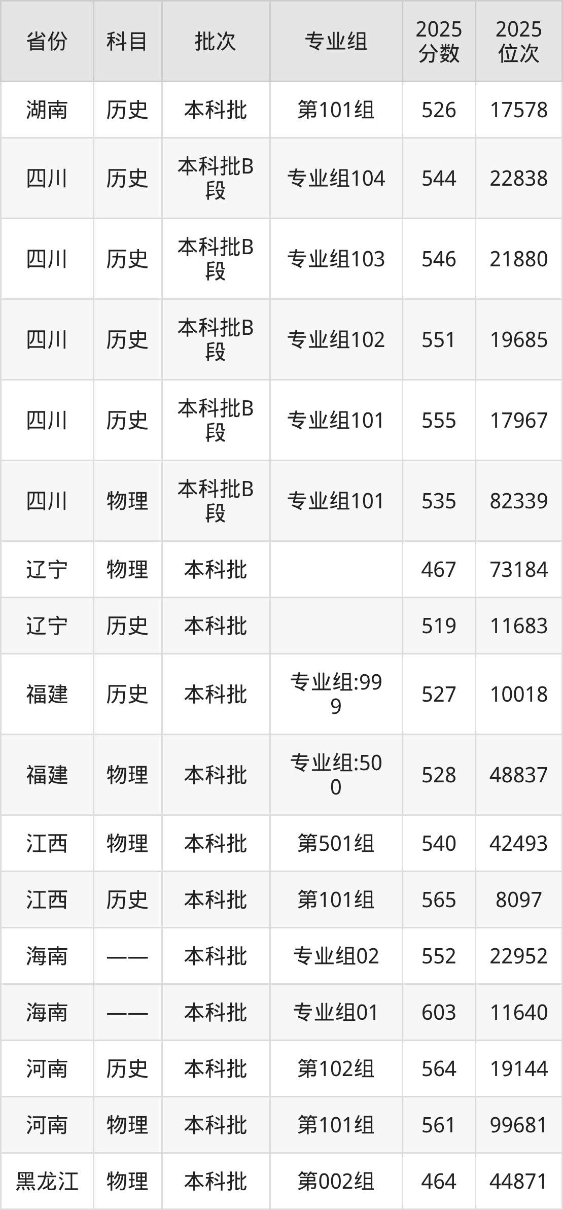 2025年投档录取最低分为526分,录取最低位次为11622名。